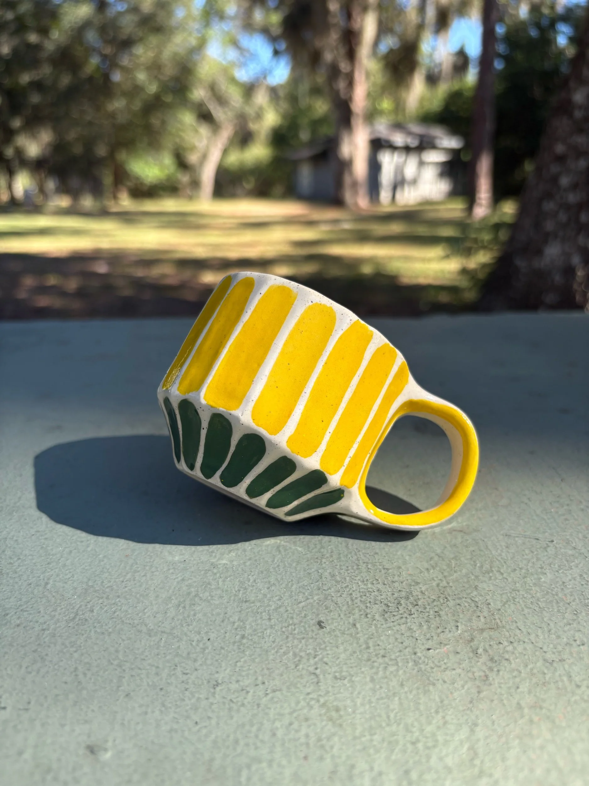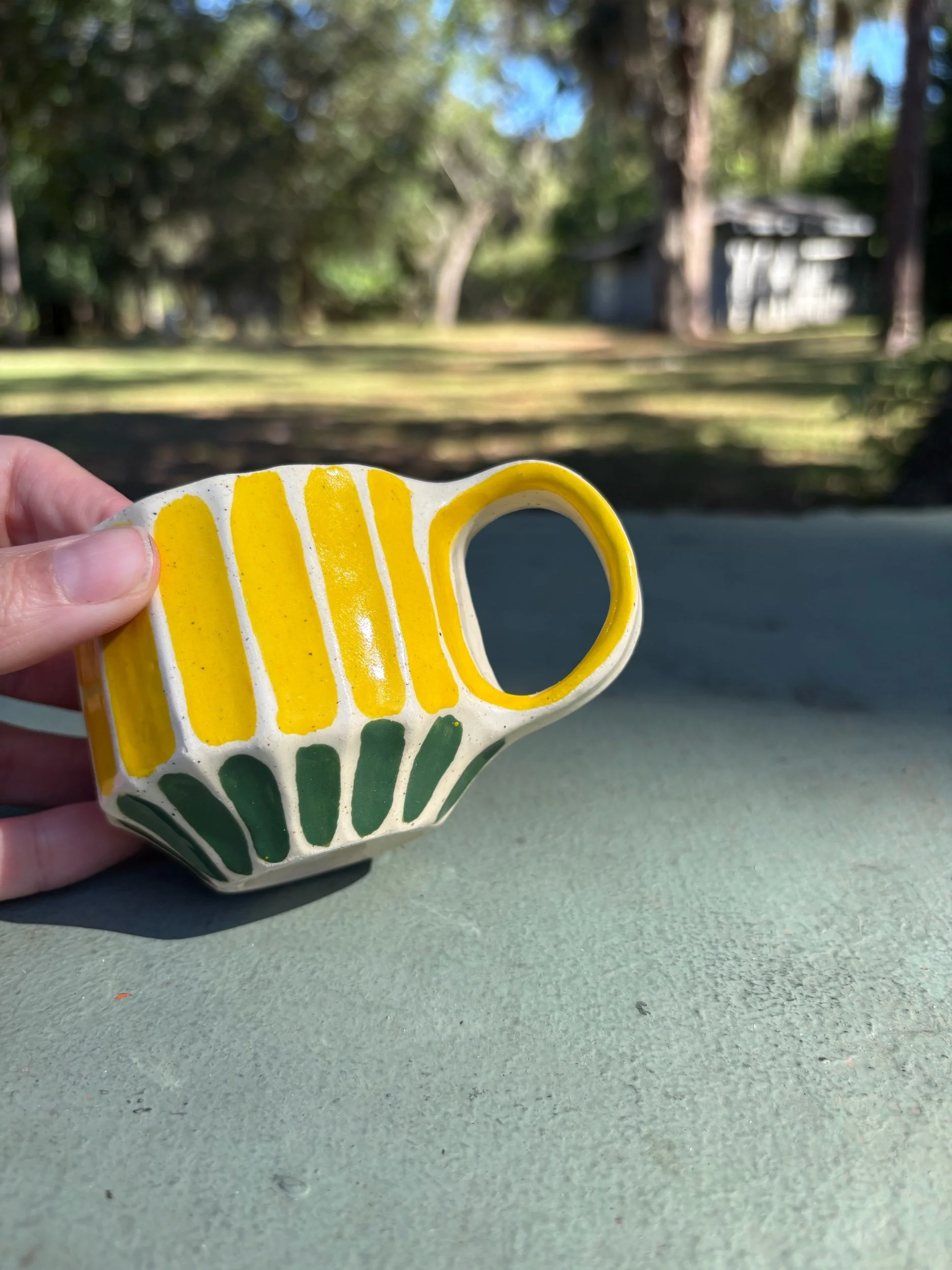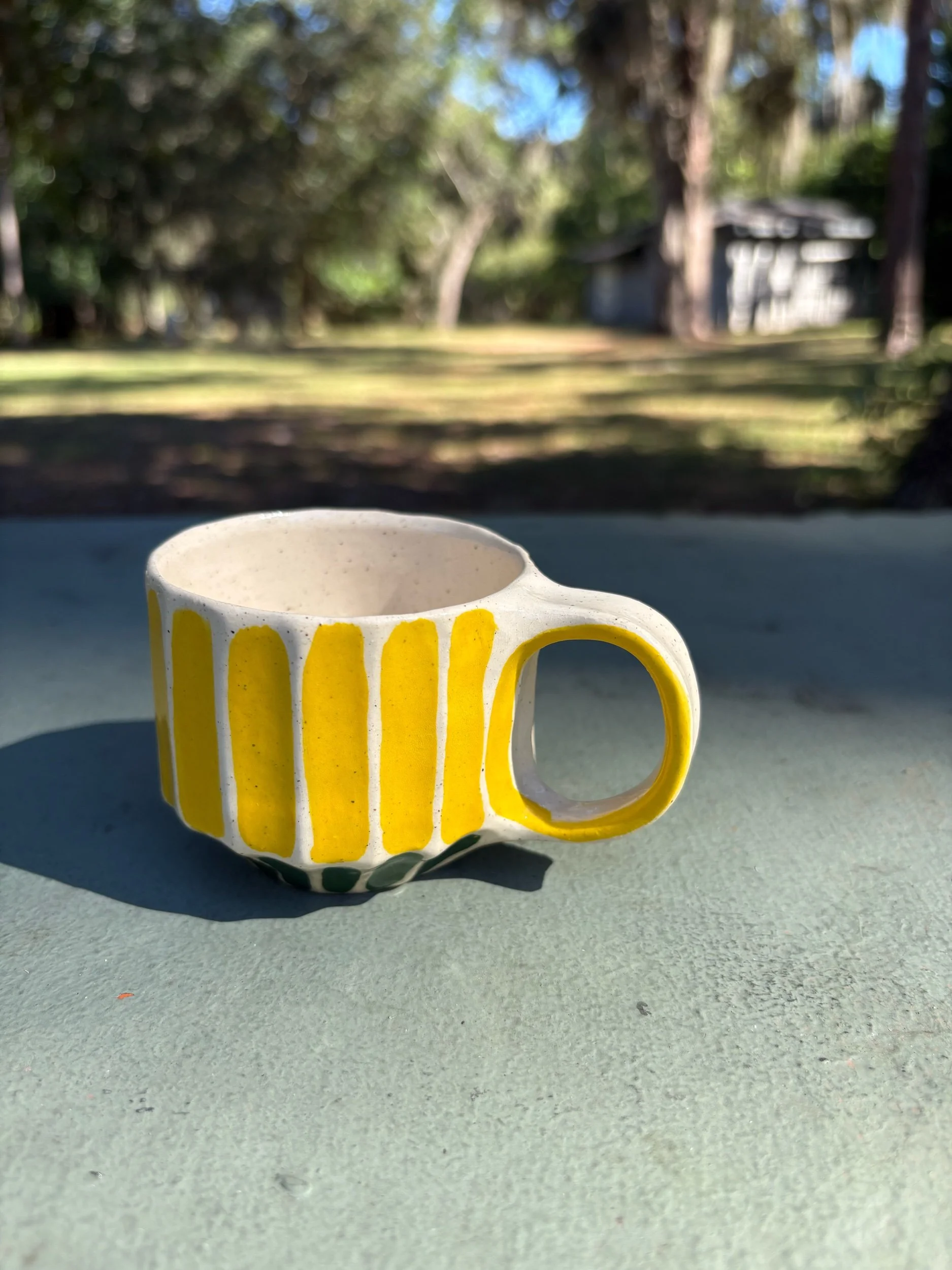 shop › Lemon lime fluted mug Image 1 of 5 Image 2 of 5 Image 3 of 5 Image 4 of 5 Image 5 of 5 Lemon lime fluted mug $50.00 Hand pinched and carved, fluted mug.Painted with yellow and green underglaze.2 1/4” tall2 3/4 diameter Add To Cart Added! Hand pinched and carved, fluted mug.Painted with yellow and green underglaze.2 1/4” tall2 3/4 diameter