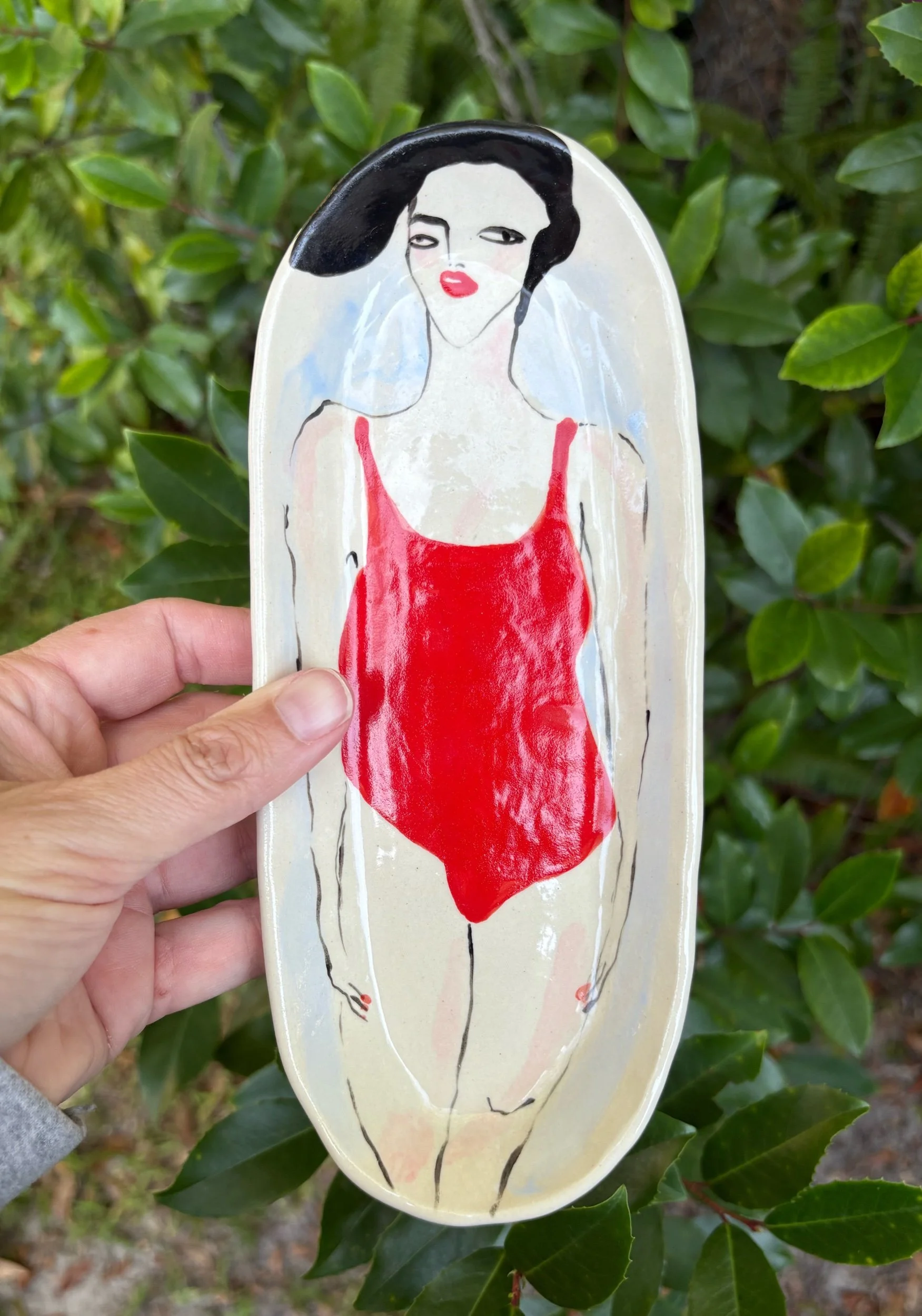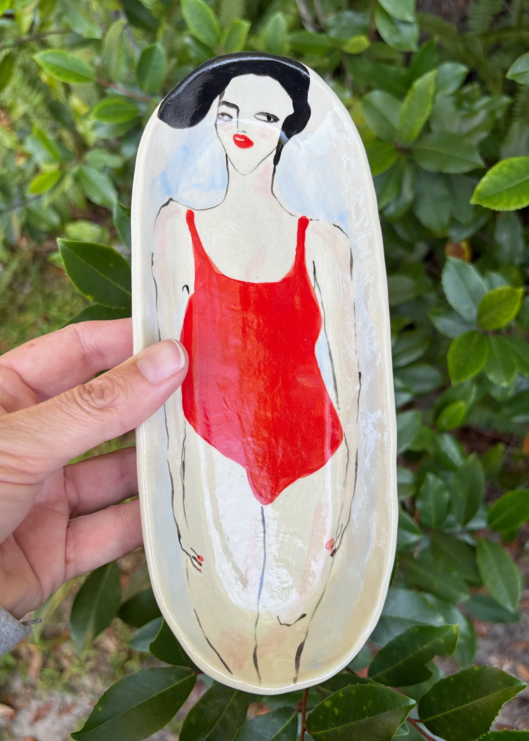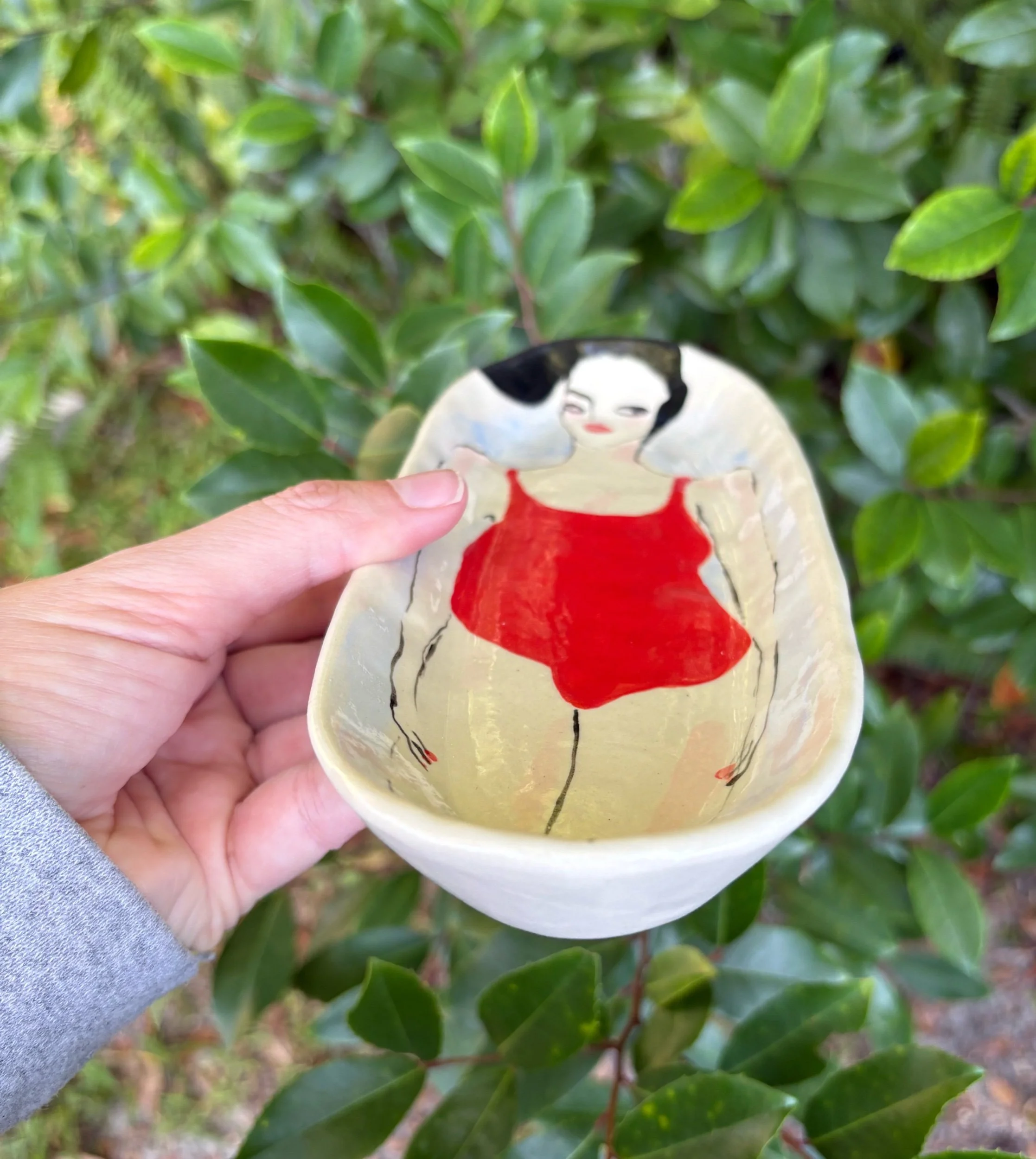 *all pieces are hand built, using pinching, coil or slab technique. No wheel. Hand painted with underglaze. Please enjoy the unique quirks!