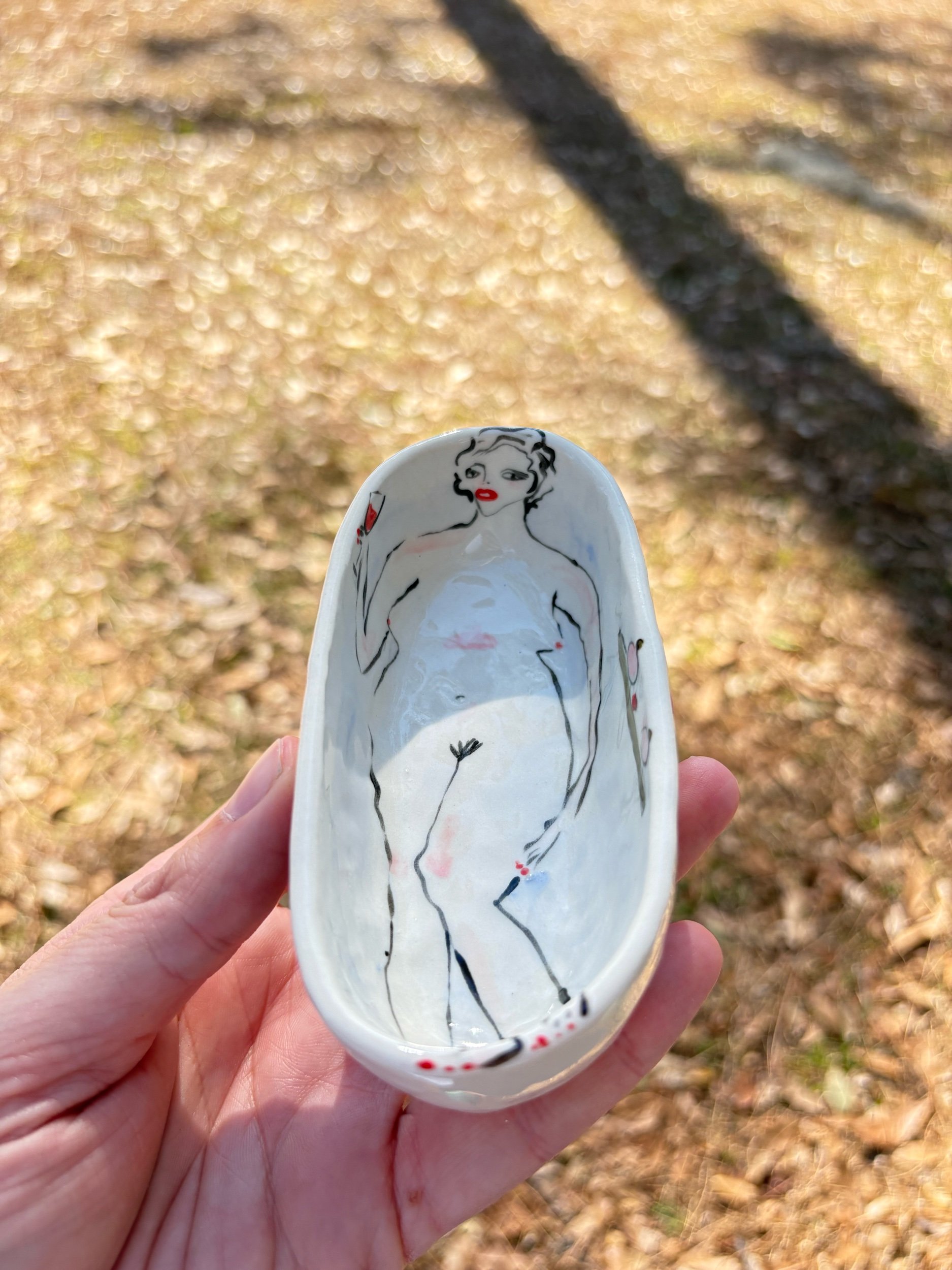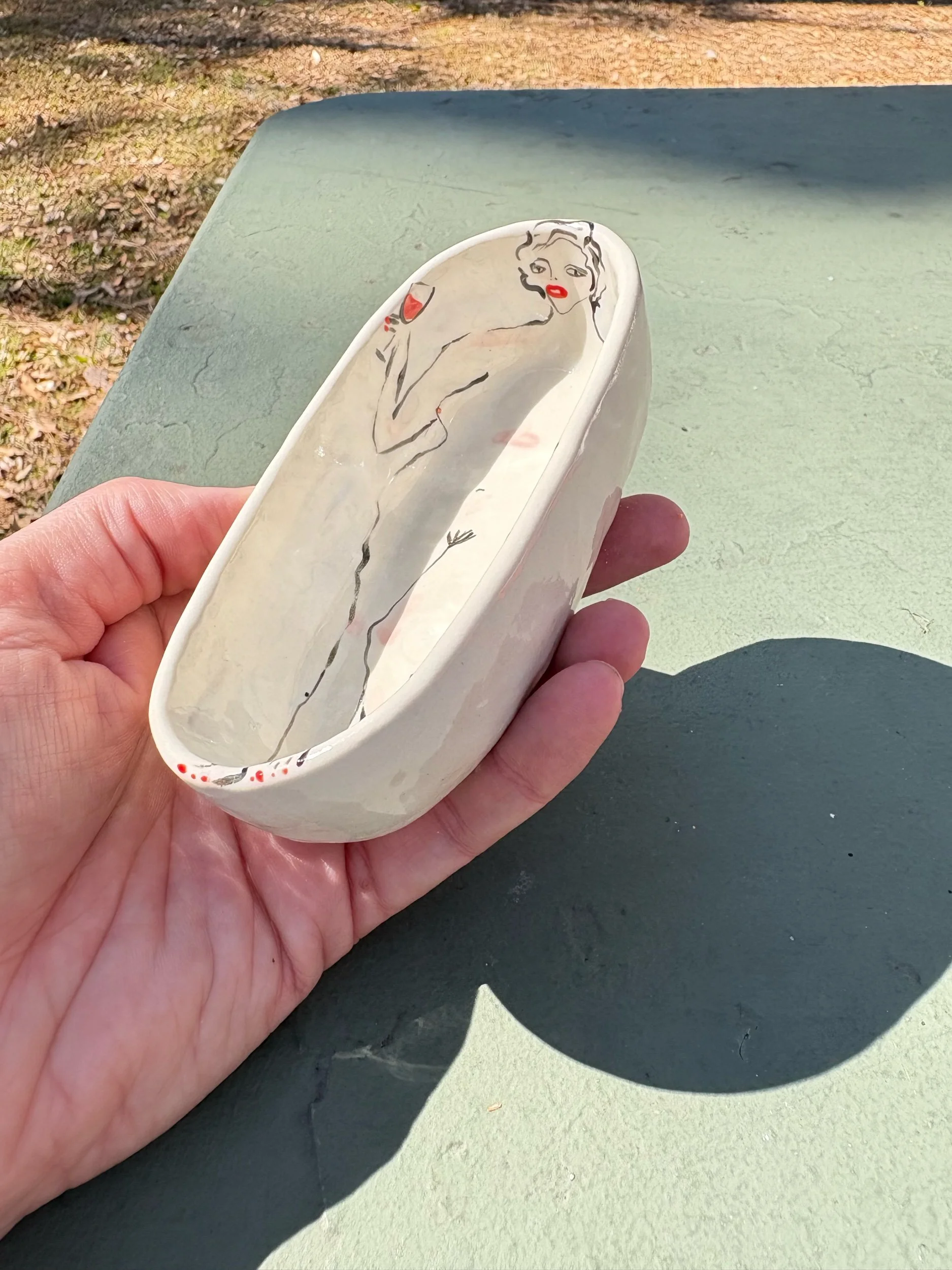 shop › Wavy haired bathtub/salt pinch Image 1 of 5 Image 2 of 5 Image 3 of 5 Image 4 of 5 Image 5 of 5 Wavy haired bathtub/salt pinch $50.00 Hand pinched and painted tub. Perfect for your salts in a pinch!4.5” x 2 1/8”1 1/4” tall Add To Cart Added! Hand pinched and painted tub. Perfect for your salts in a pinch!4.5” x 2 1/8”1 1/4” tall