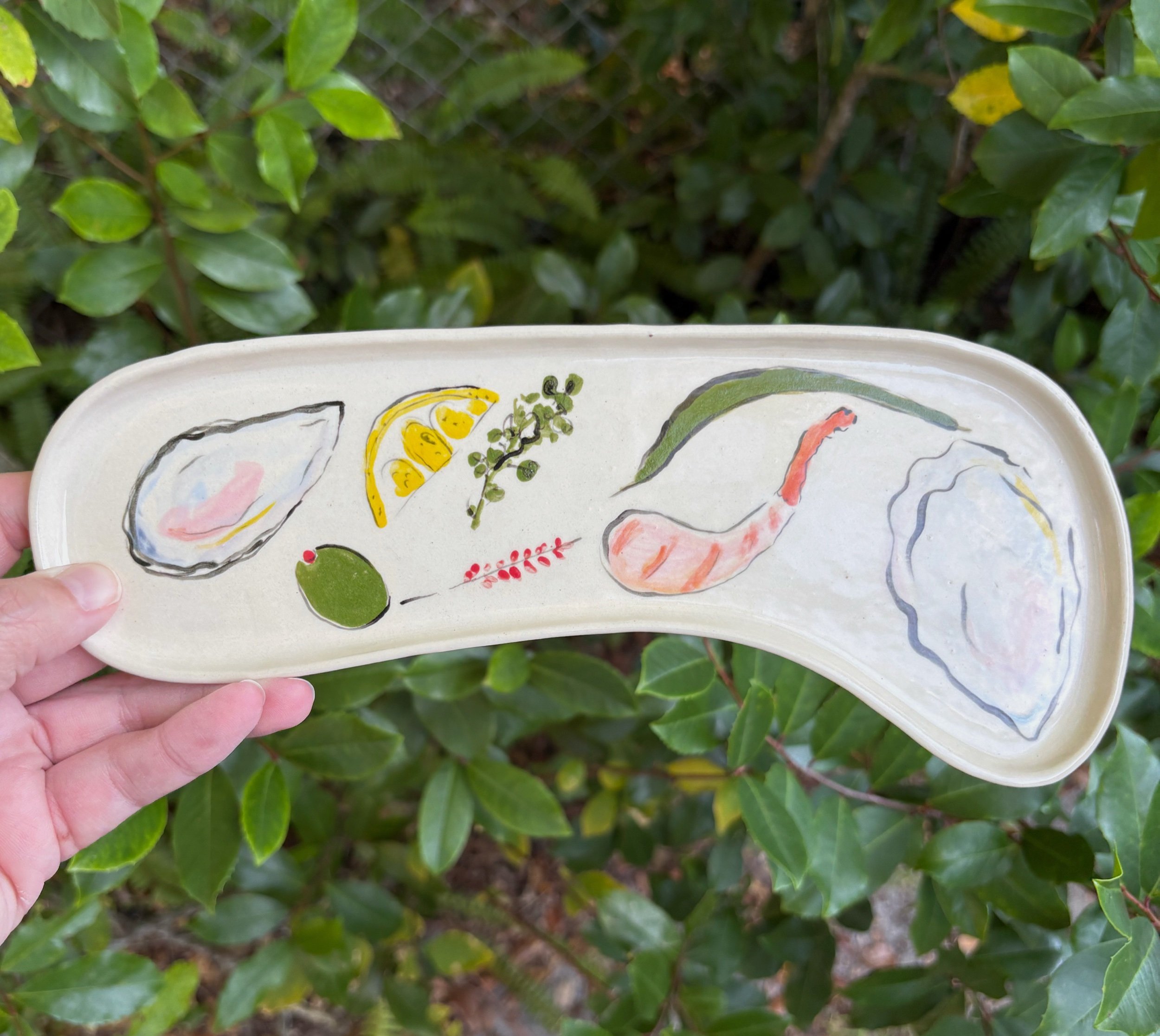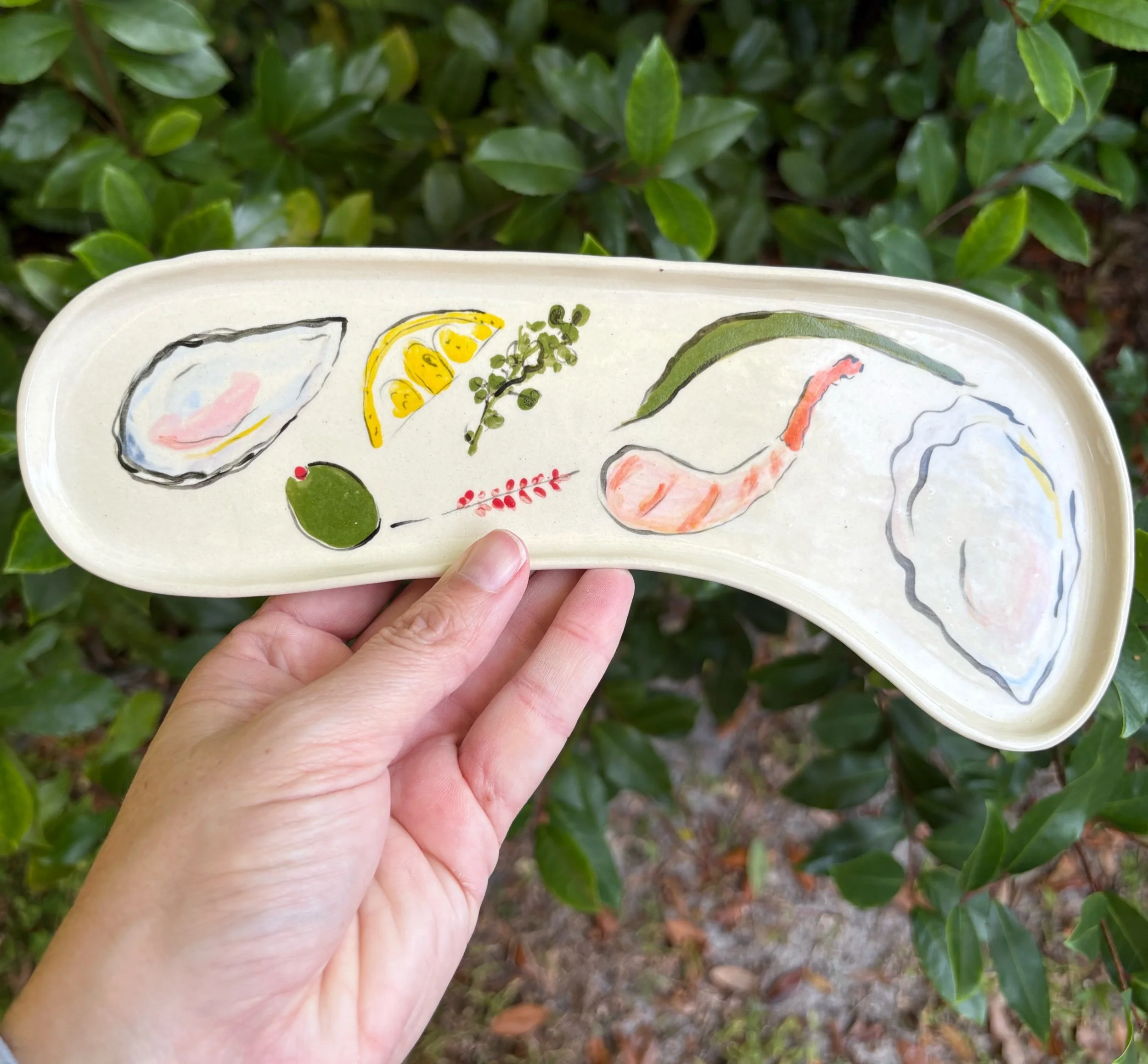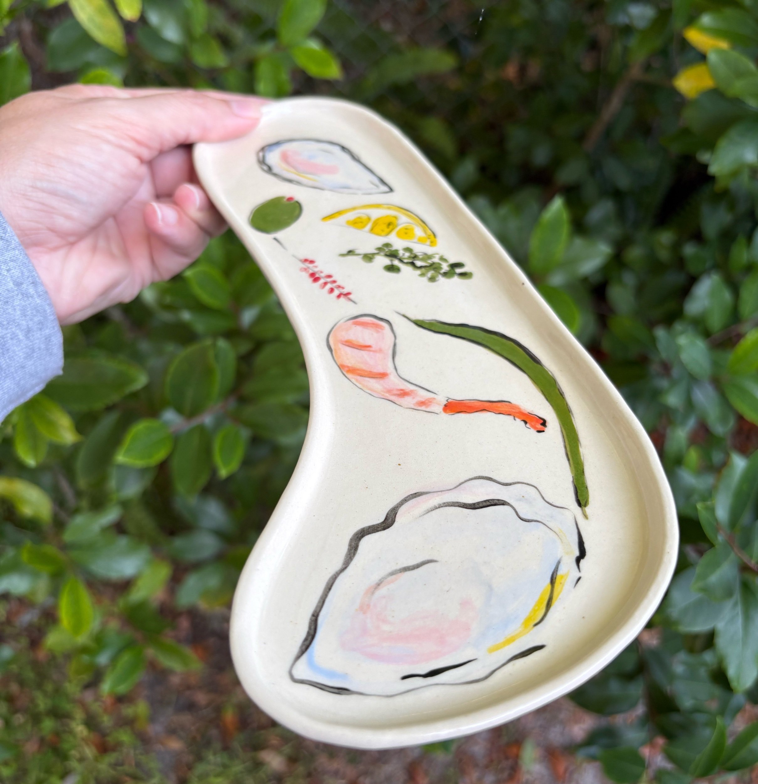 Hand built dish. Hand painted designs. Perfect for entertaining guests or yourself!