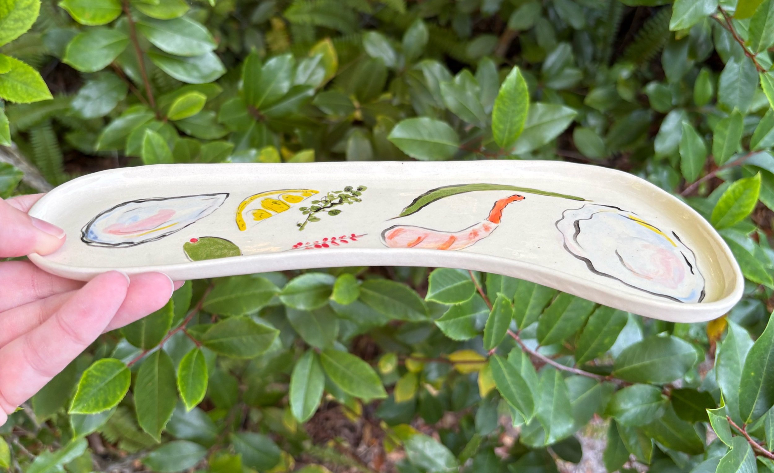 *all pieces are hand built, using pinching, coil or slab technique. No wheel. Hand painted with underglaze. Please enjoy the unique quirks!