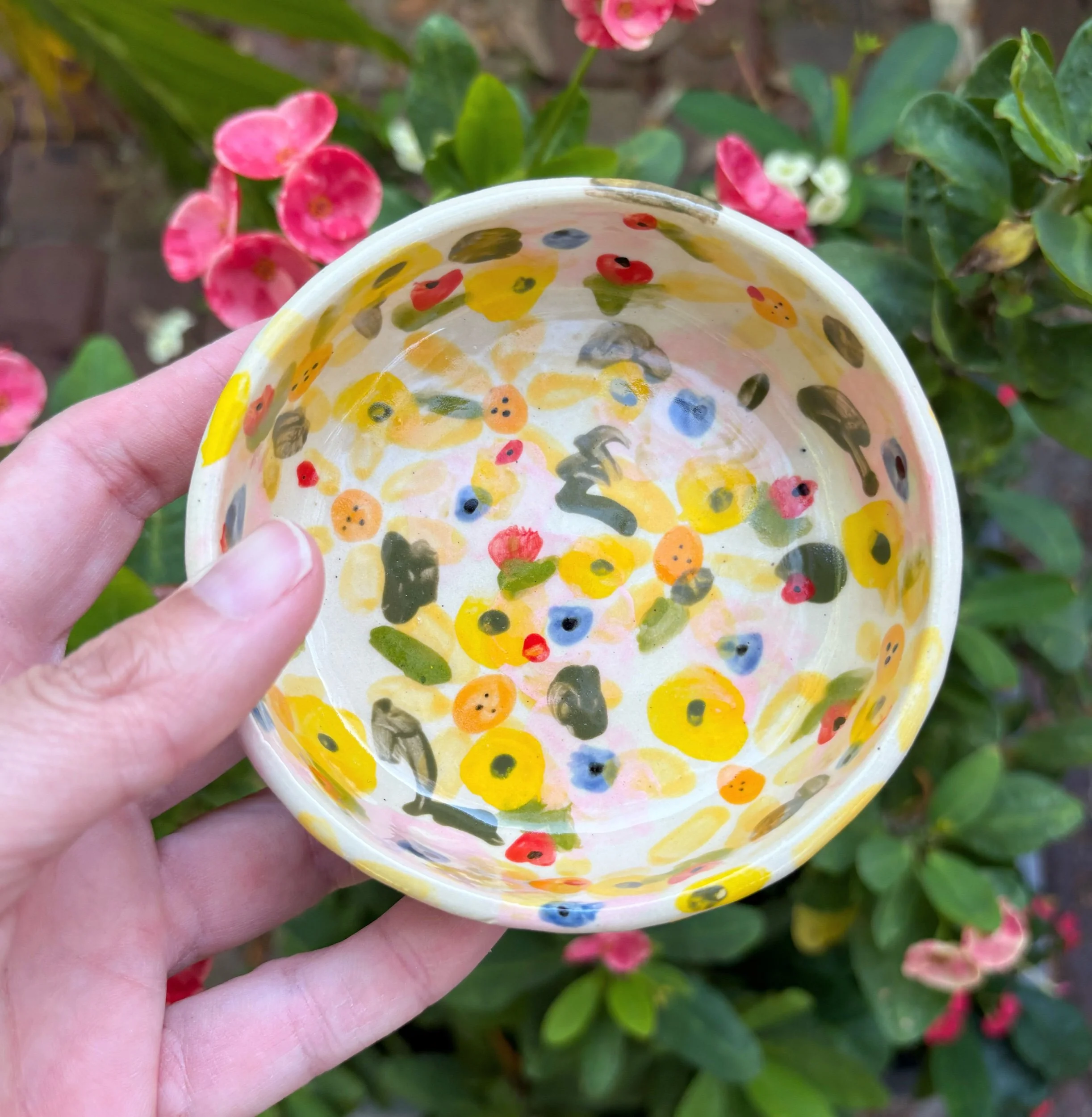 *all pieces are hand built, using pinching, coil or slab technique. No wheel. Hand painted with underglaze. Please enjoy the unique quirks!