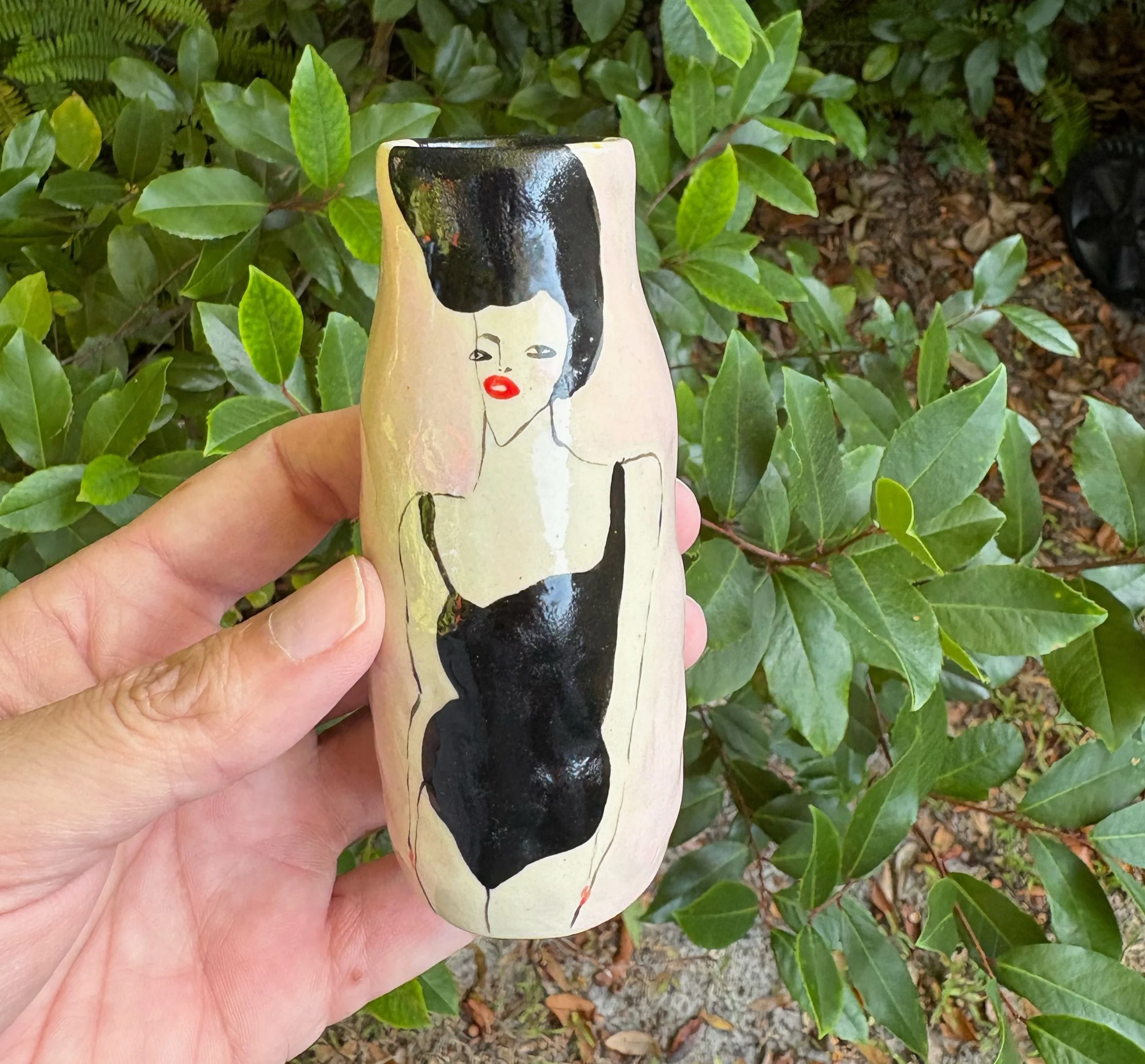 *all pieces are hand built, using pinching, coil or slab technique. No wheel. Hand painted with underglaze. Please enjoy the unique quirks!