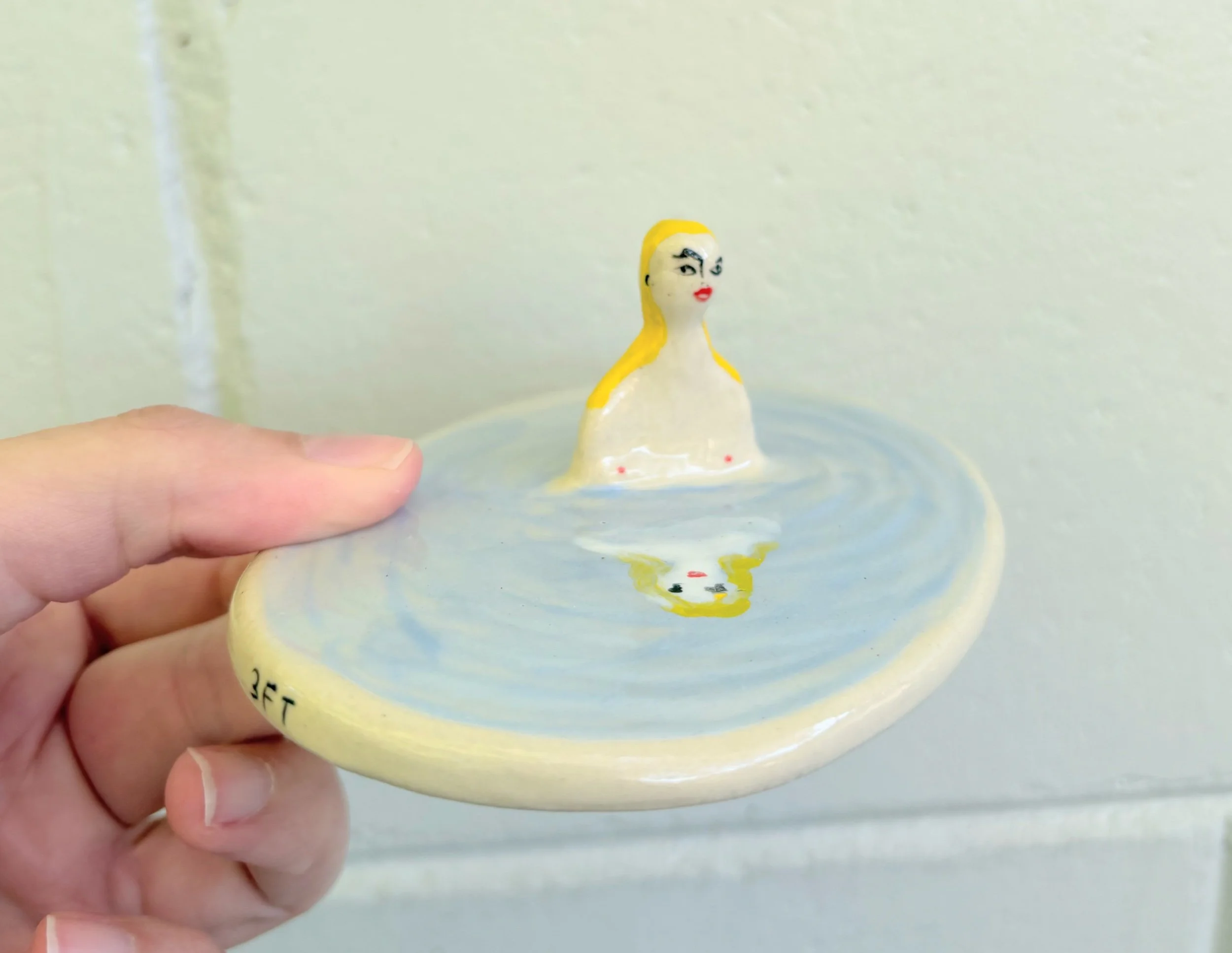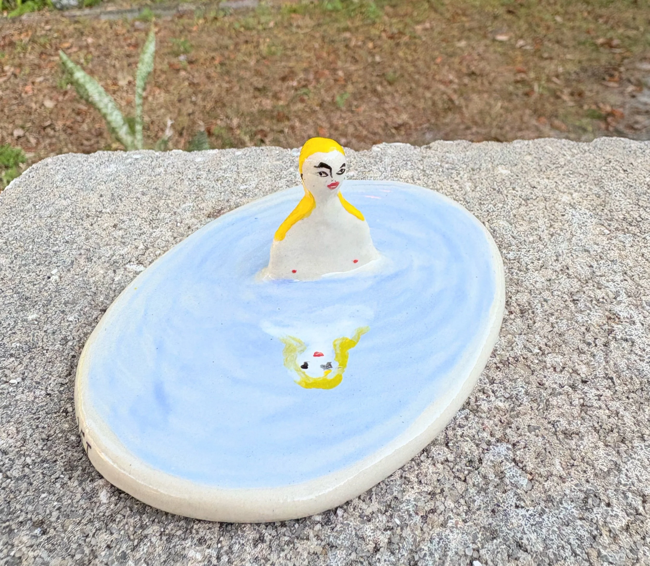 shop › Reflection pool ring dish Image 1 of 5 Image 2 of 5 Image 3 of 5 Image 4 of 5 Image 5 of 5 Reflection pool ring dish $50.00 Hand built and painted ring dish.5 x 3.5” Add To Cart Added! Hand built and painted ring dish.5 x 3.5”