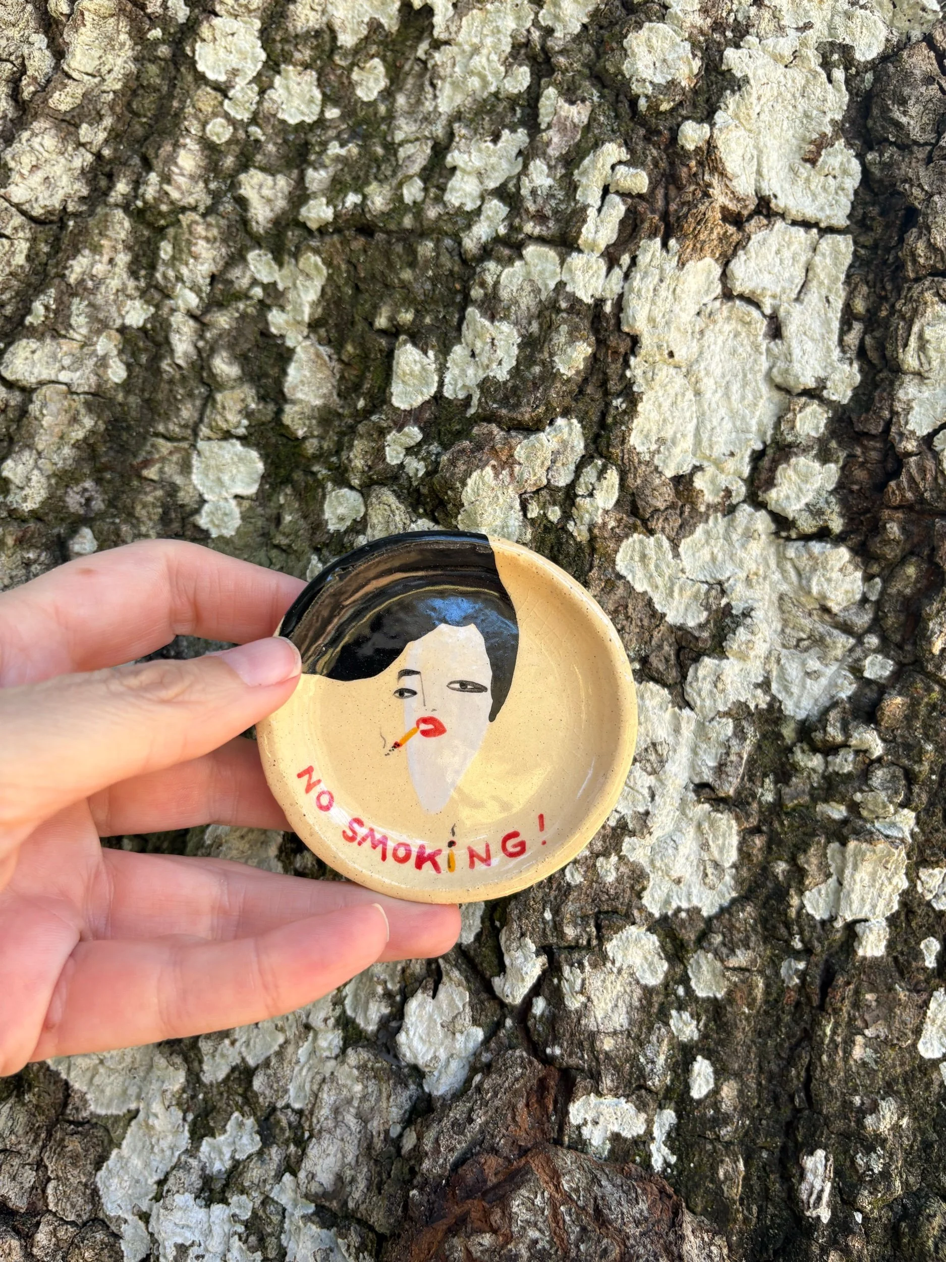 shop › tiny no smoking tray Image 1 of 3 Image 2 of 3 Image 3 of 3 tiny no smoking tray $28.00 Hand pinched and painted tray.Perfect for a teabag or tiny treasure!3” diameter Add To Cart Added! Hand pinched and painted tray.Perfect for a teabag or tiny treasure!3” diameter