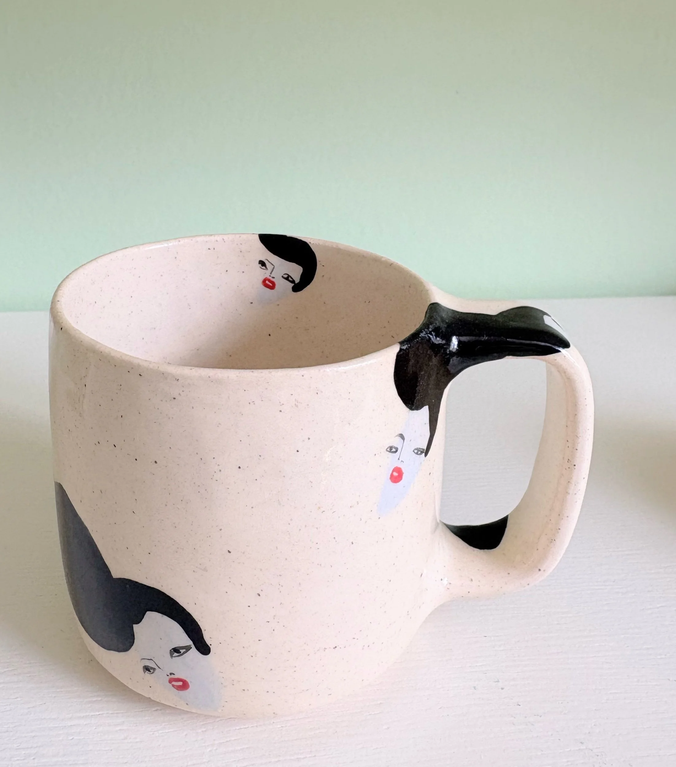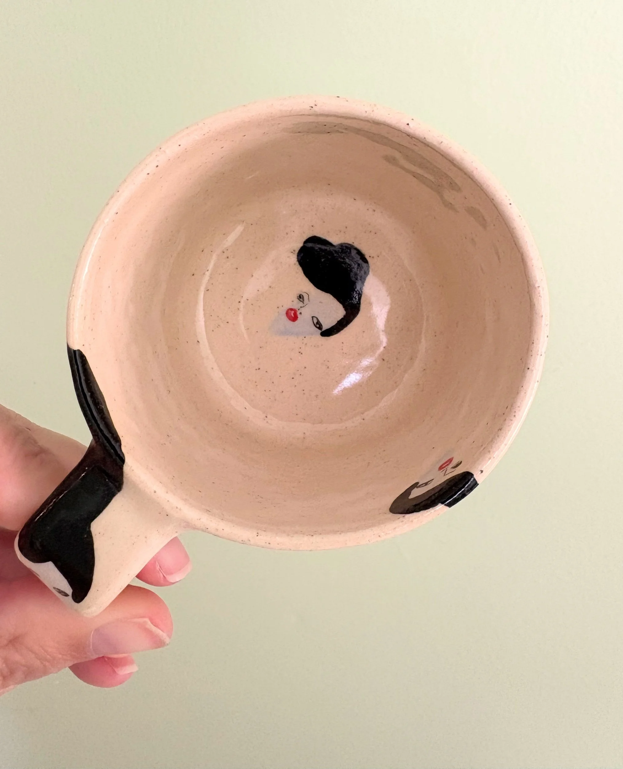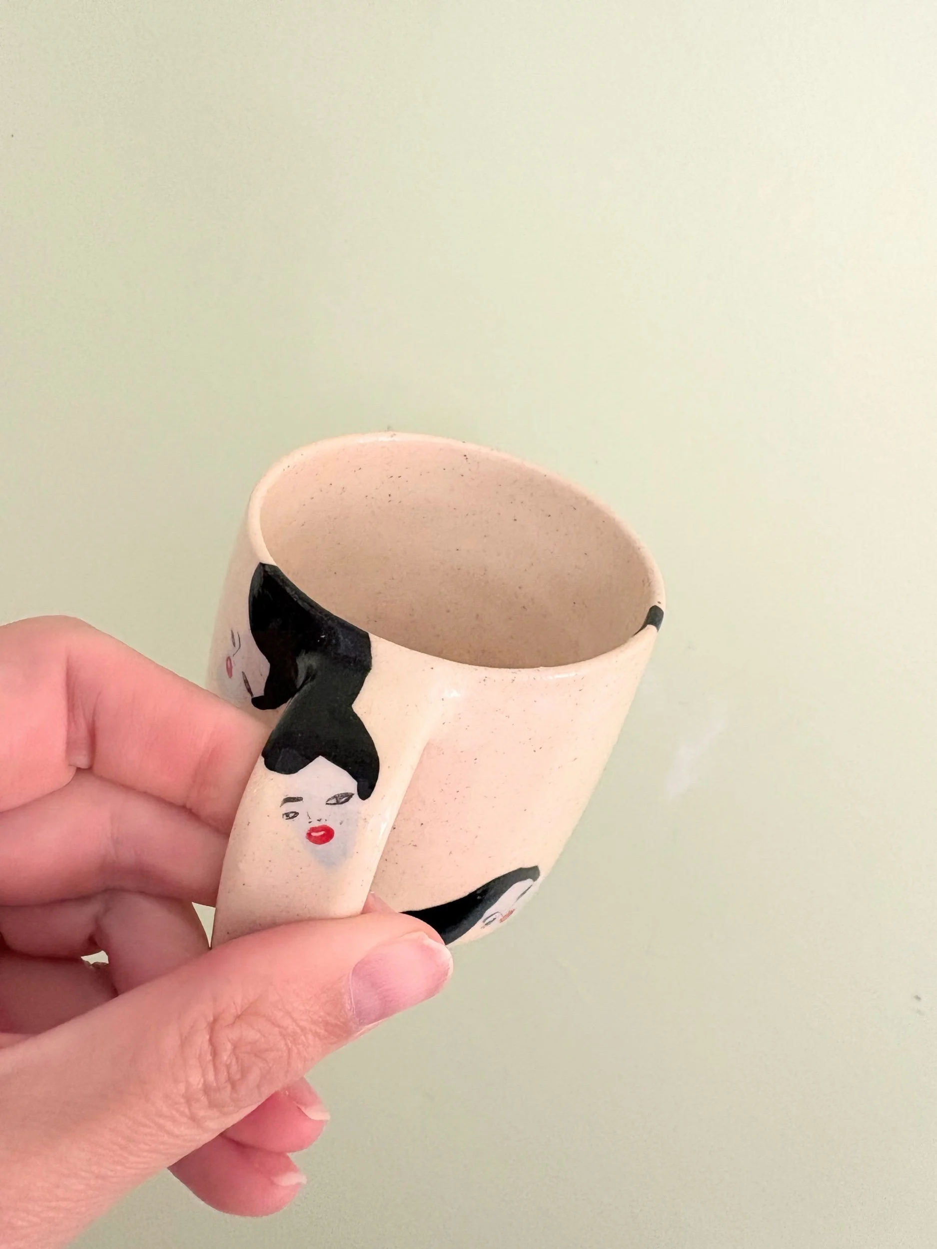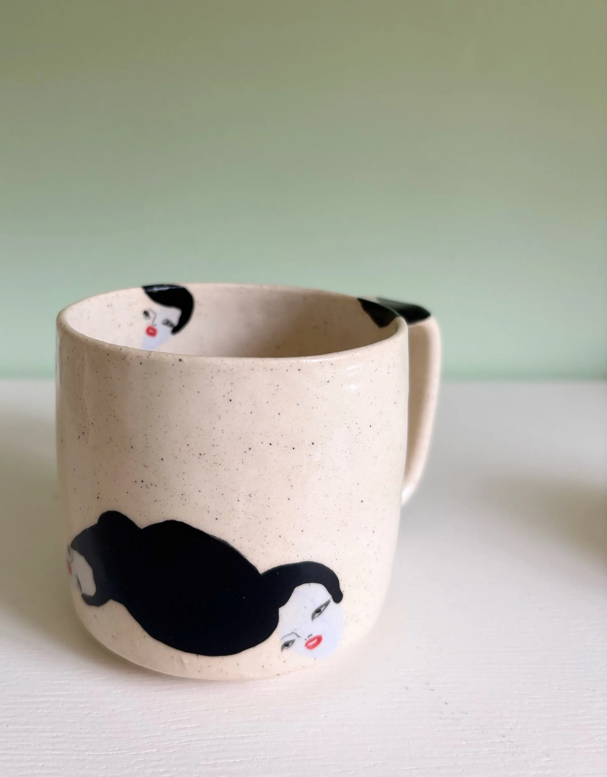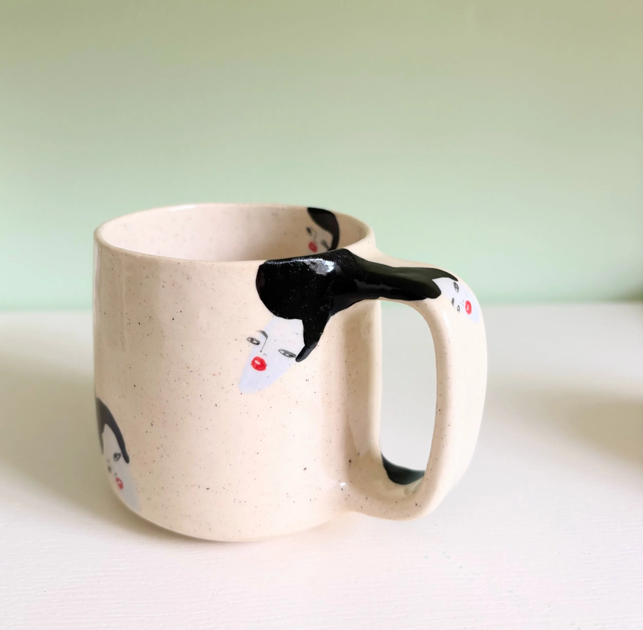 shop › Black haired lady mug Image 1 of 5 Image 2 of 5 Image 3 of 5 Image 4 of 5 Image 5 of 5 Black haired lady mug $60.00 Slab built, hand painted mug. Perfect for your sipping your warm beverage whilst spilling tea!3 1/4” tall x 3” Add To Cart Added! Slab built, hand painted mug. Perfect for your sipping your warm beverage whilst spilling tea!3 1/4” tall x 3”