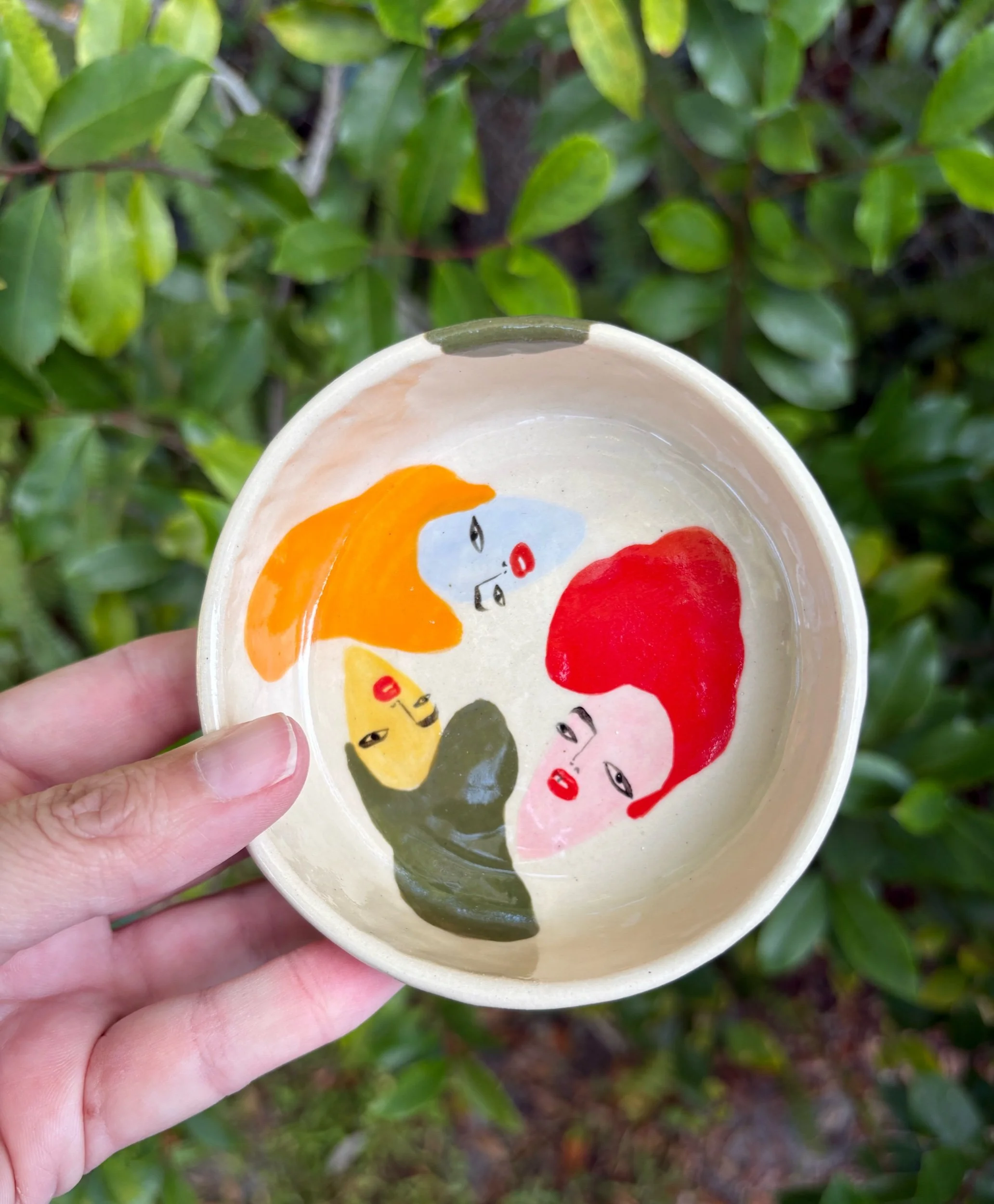 *all pieces are hand built, using pinching, coil or slab technique. No wheel. Hand painted with underglaze. Please enjoy the unique quirks!