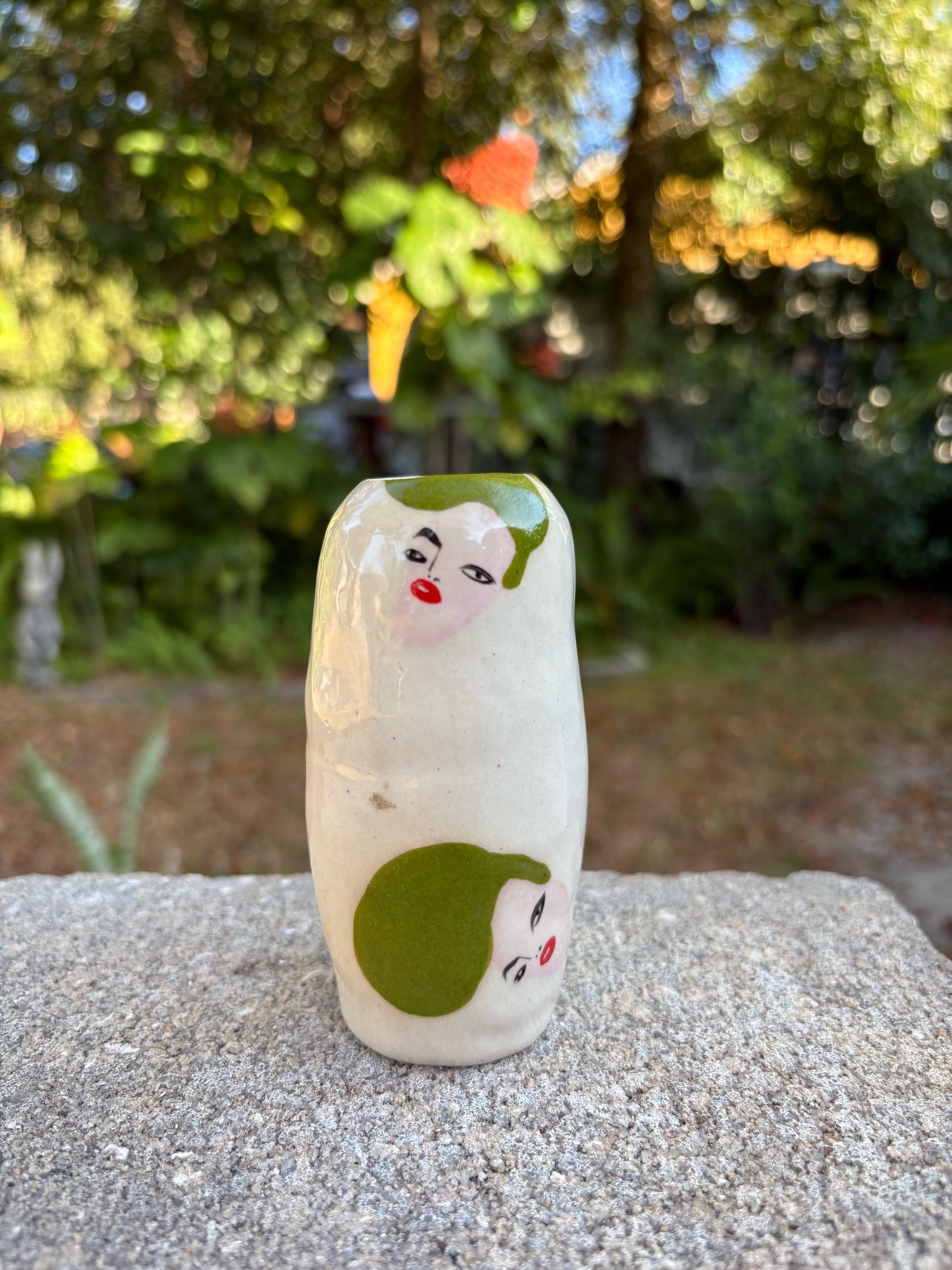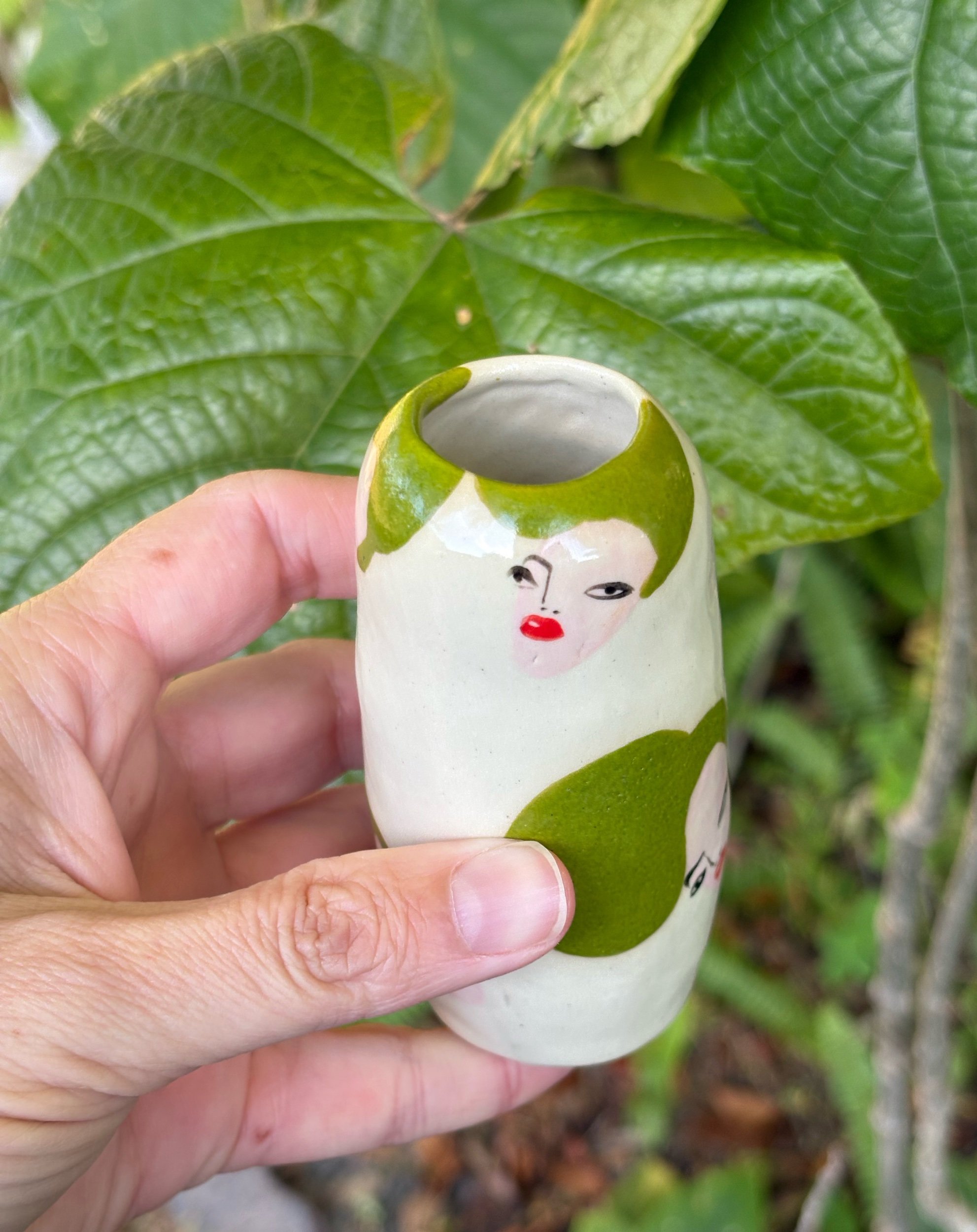 *all pieces are hand built, using pinching , coil or slab technique. No wheel. Hand painted with underglaze. Please enjoy the quirks!