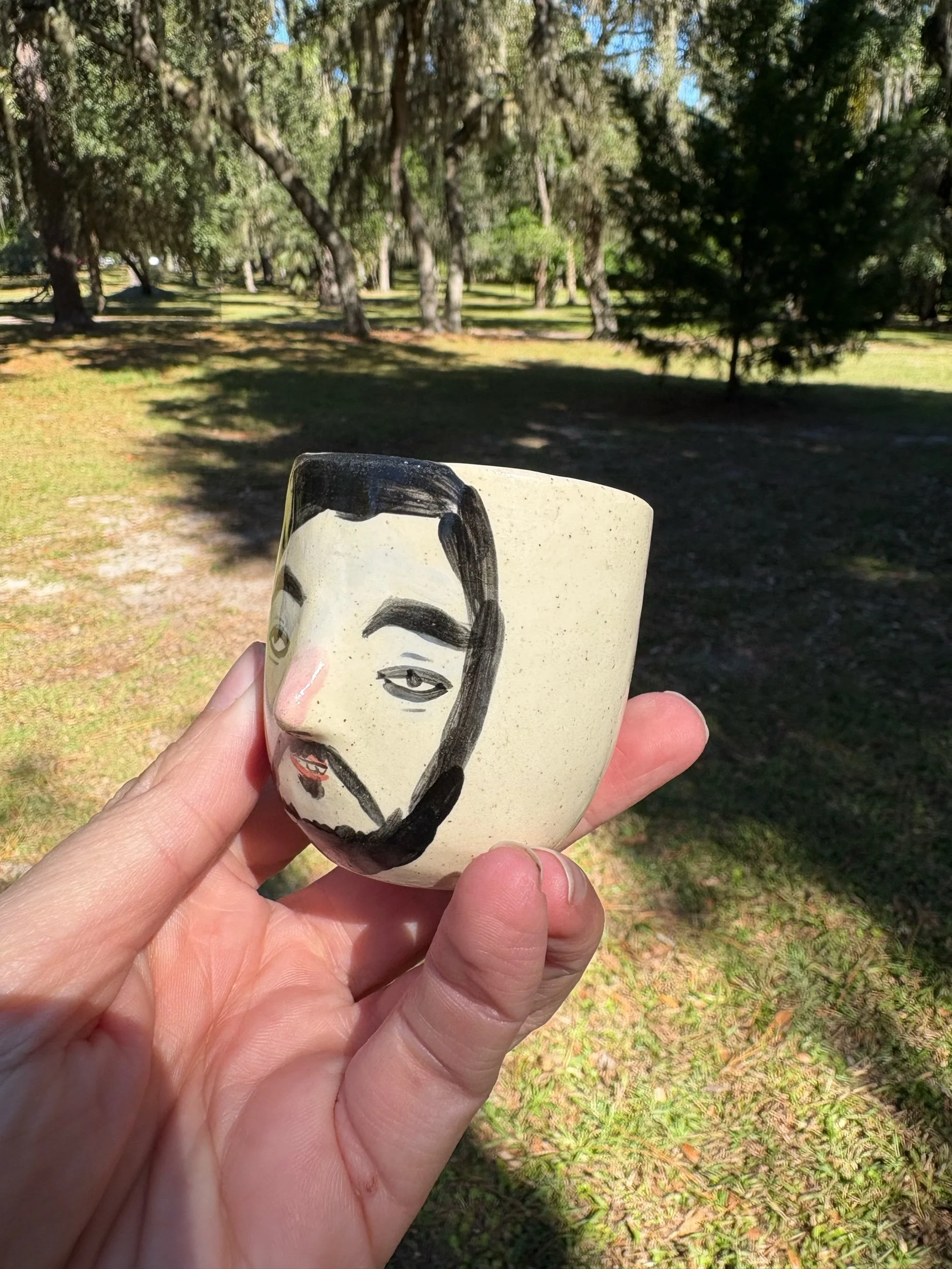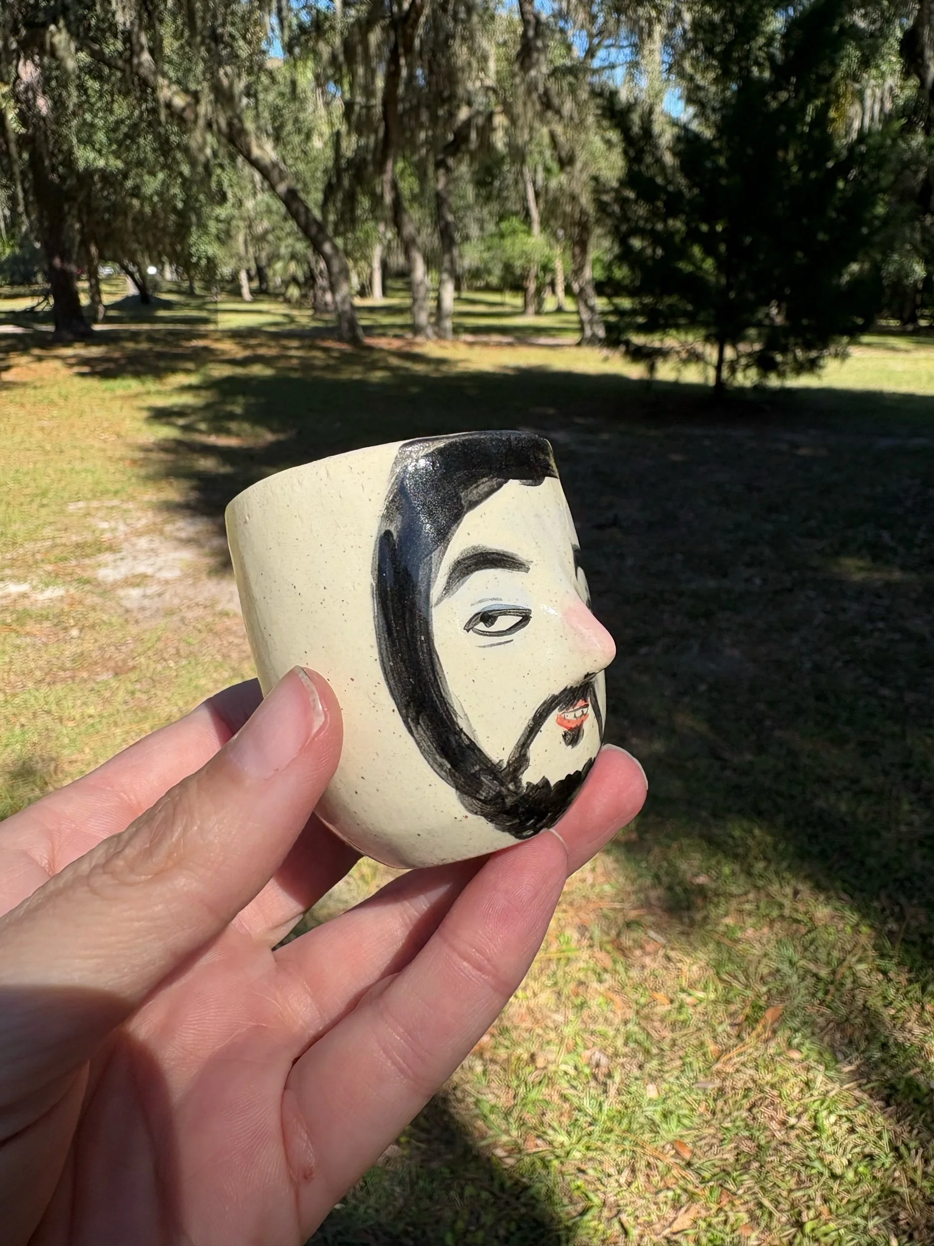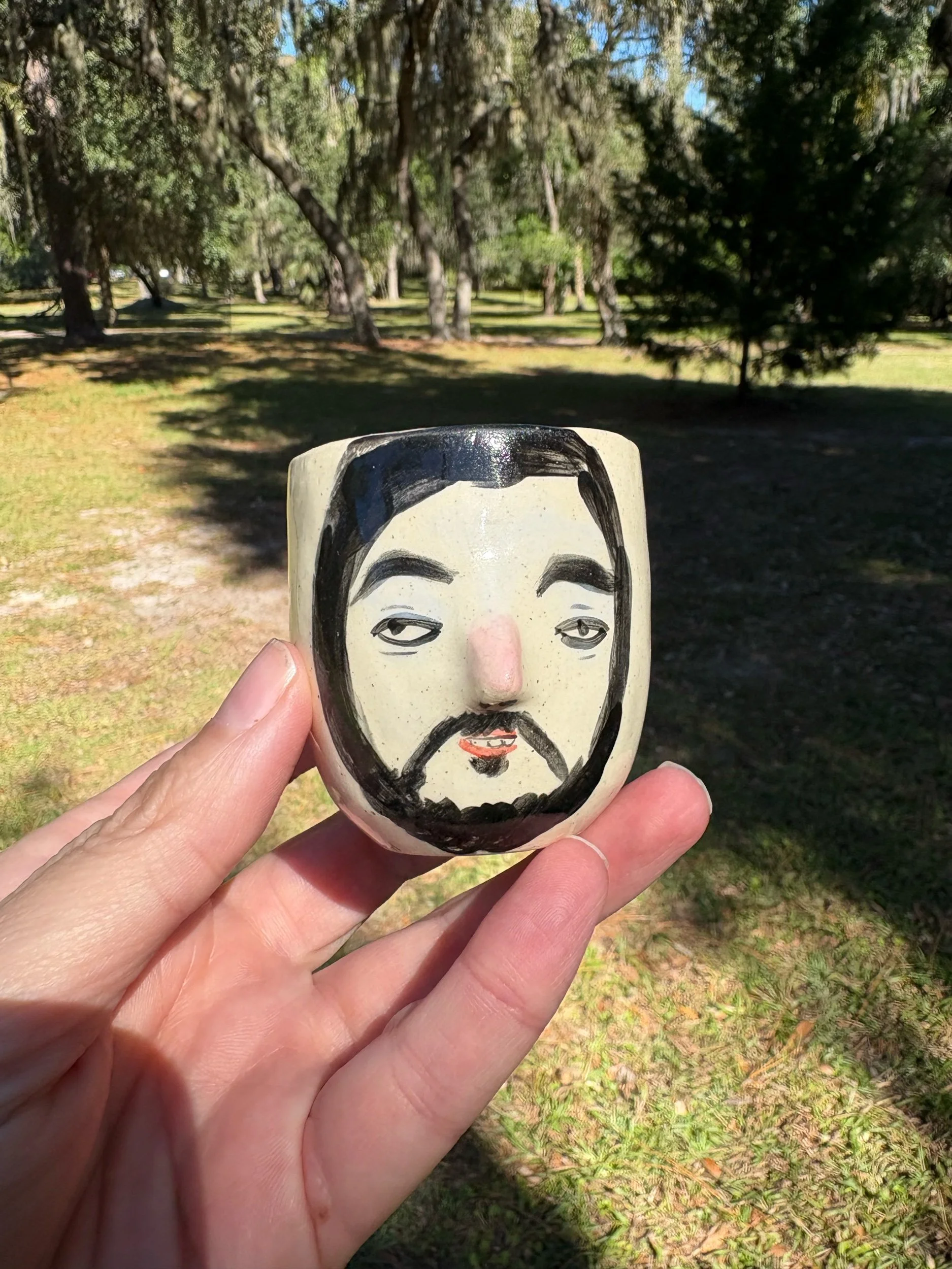 shop › Beardo sipper cup Image 1 of 4 Image 2 of 4 Image 3 of 4 Image 4 of 4 Beardo sipper cup $30.00 Hand pinched and painted sipper cup.2 1/4 “ tall2 1/8” diameter Add To Cart Added! Hand pinched and painted sipper cup.2 1/4 “ tall2 1/8” diameter