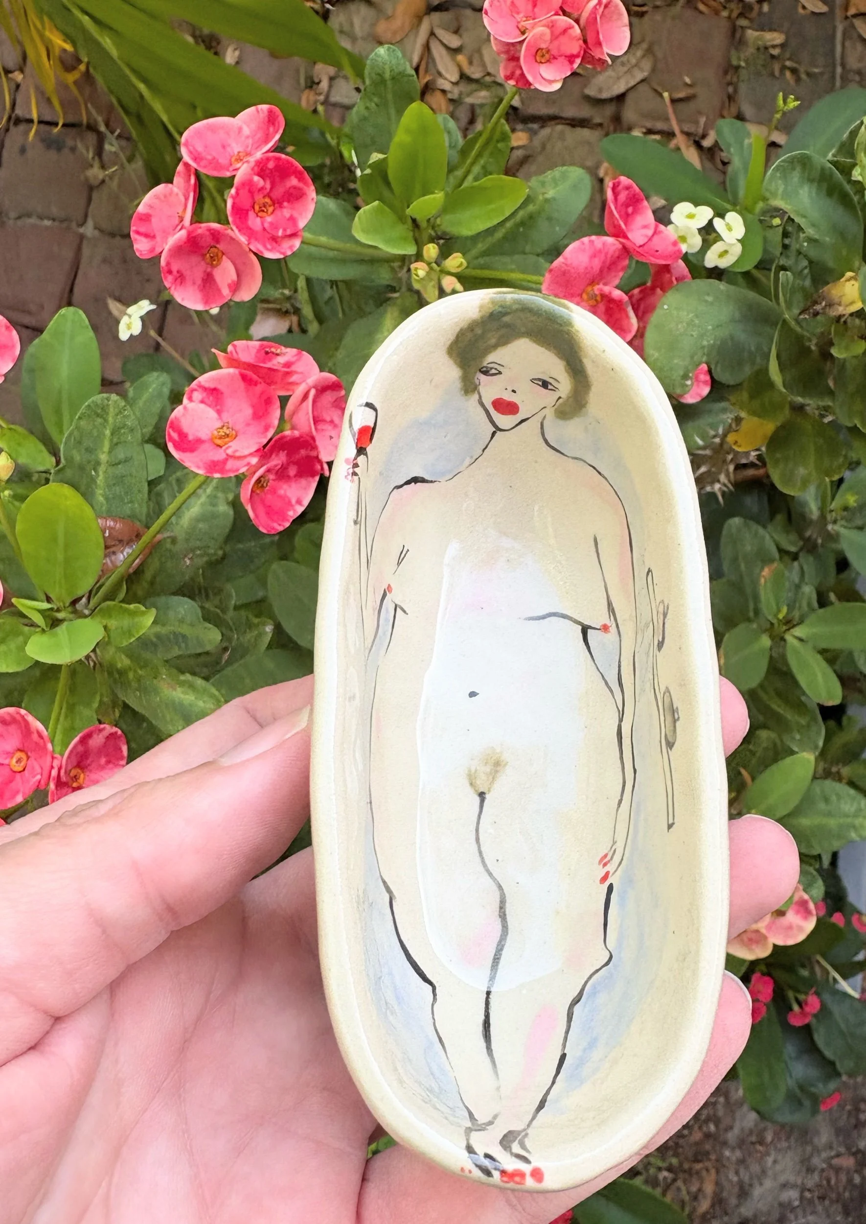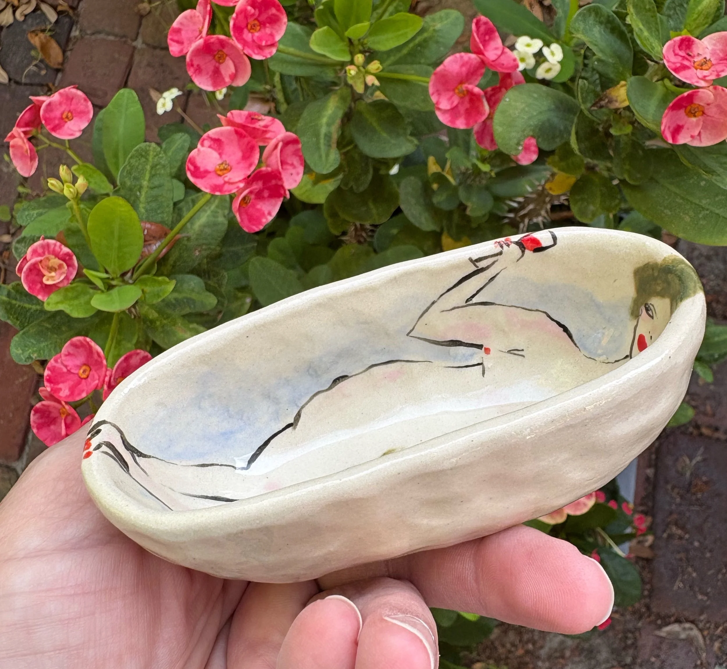 Hand pinched and painted tub. Perfect for your salts in a pinch!