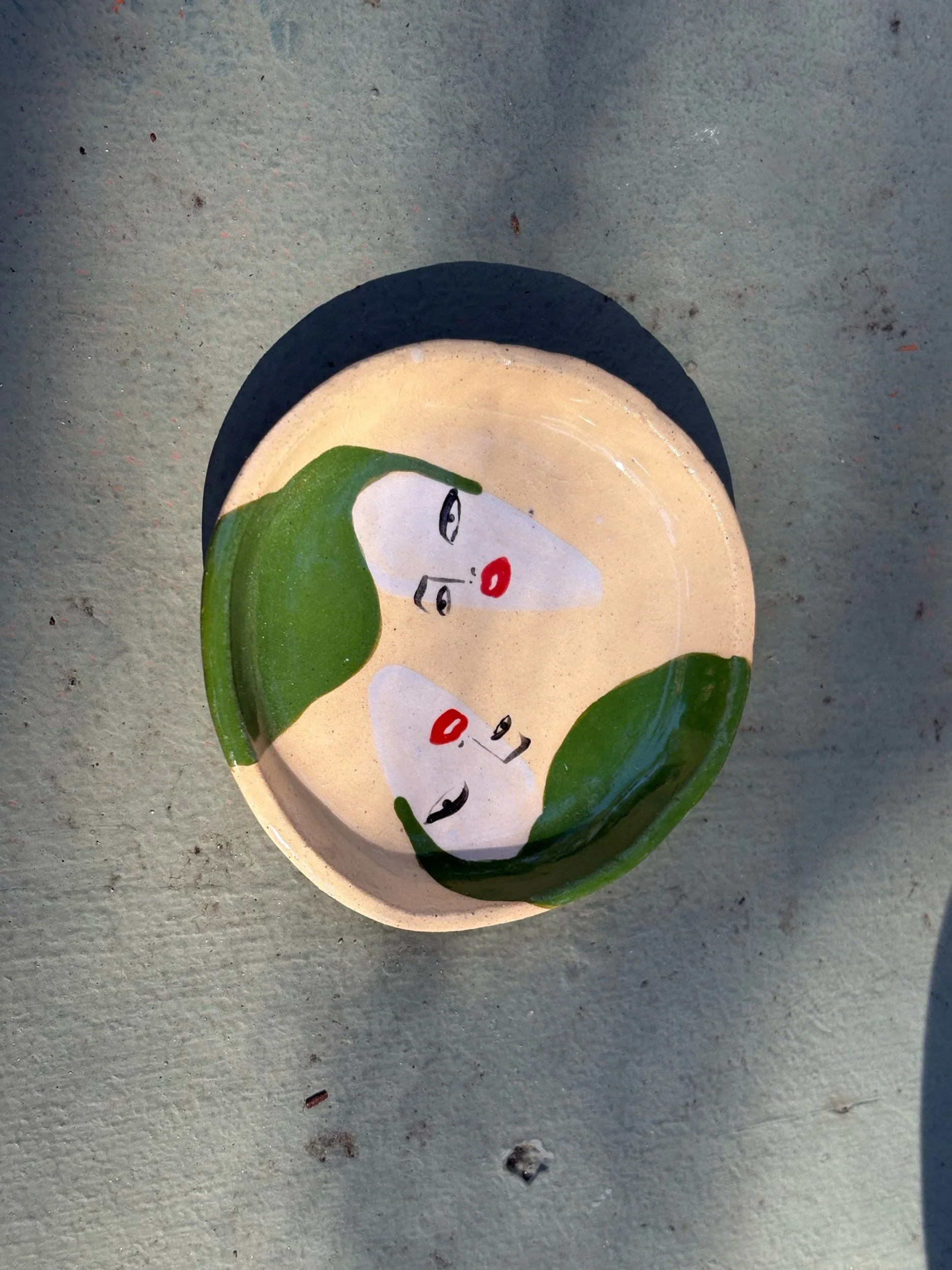 shop › Green haired tiny dish. Image 1 of 4 Image 2 of 4 Image 3 of 4 Image 4 of 4 Green haired tiny dish. $25.00 Hand pinched and painted tiny dish.Perfect for your coffee spoon or teabag!3.5” diameter Add To Cart Added! Hand pinched and painted tiny dish.Perfect for your coffee spoon or teabag!3.5” diameter