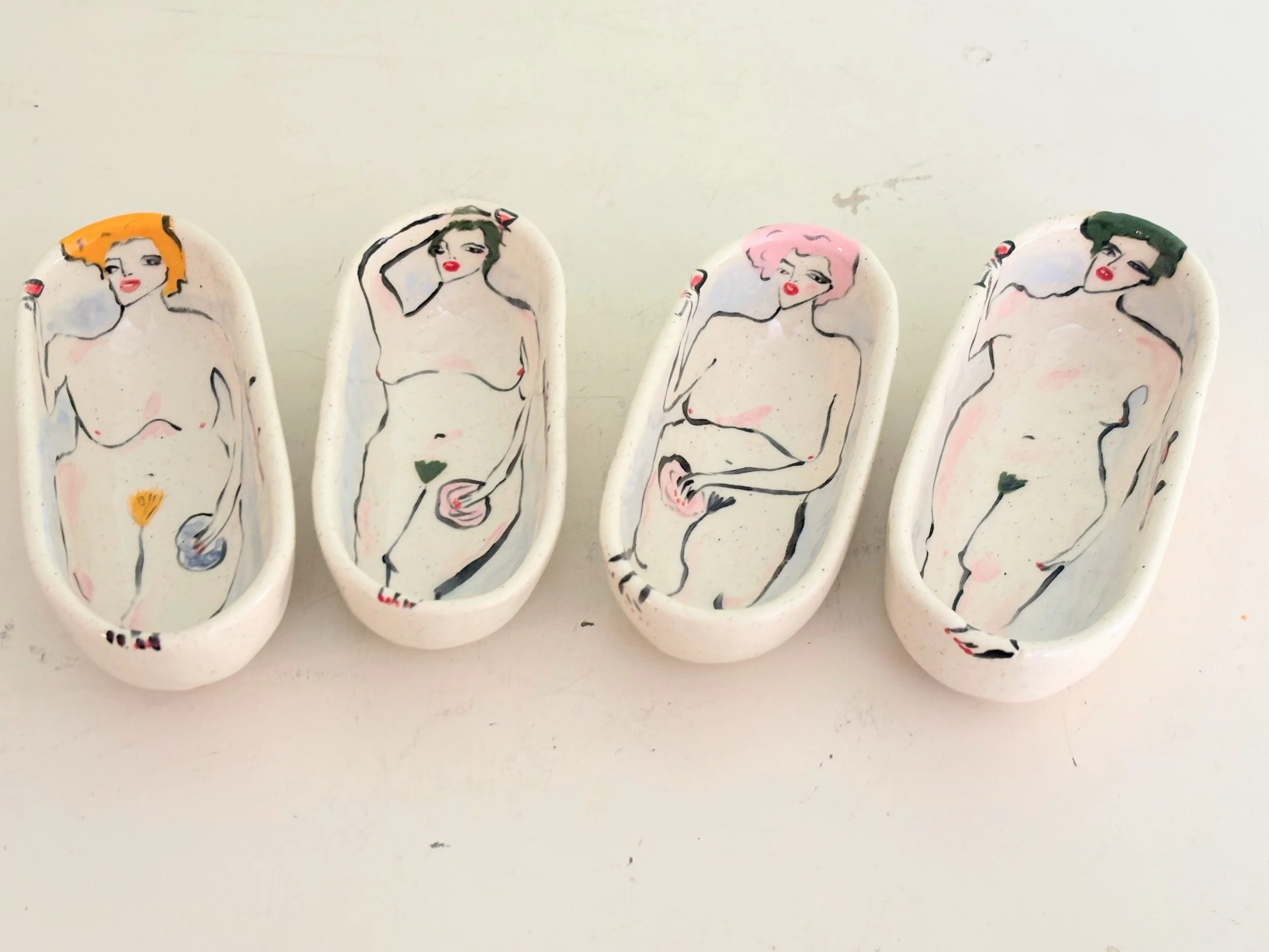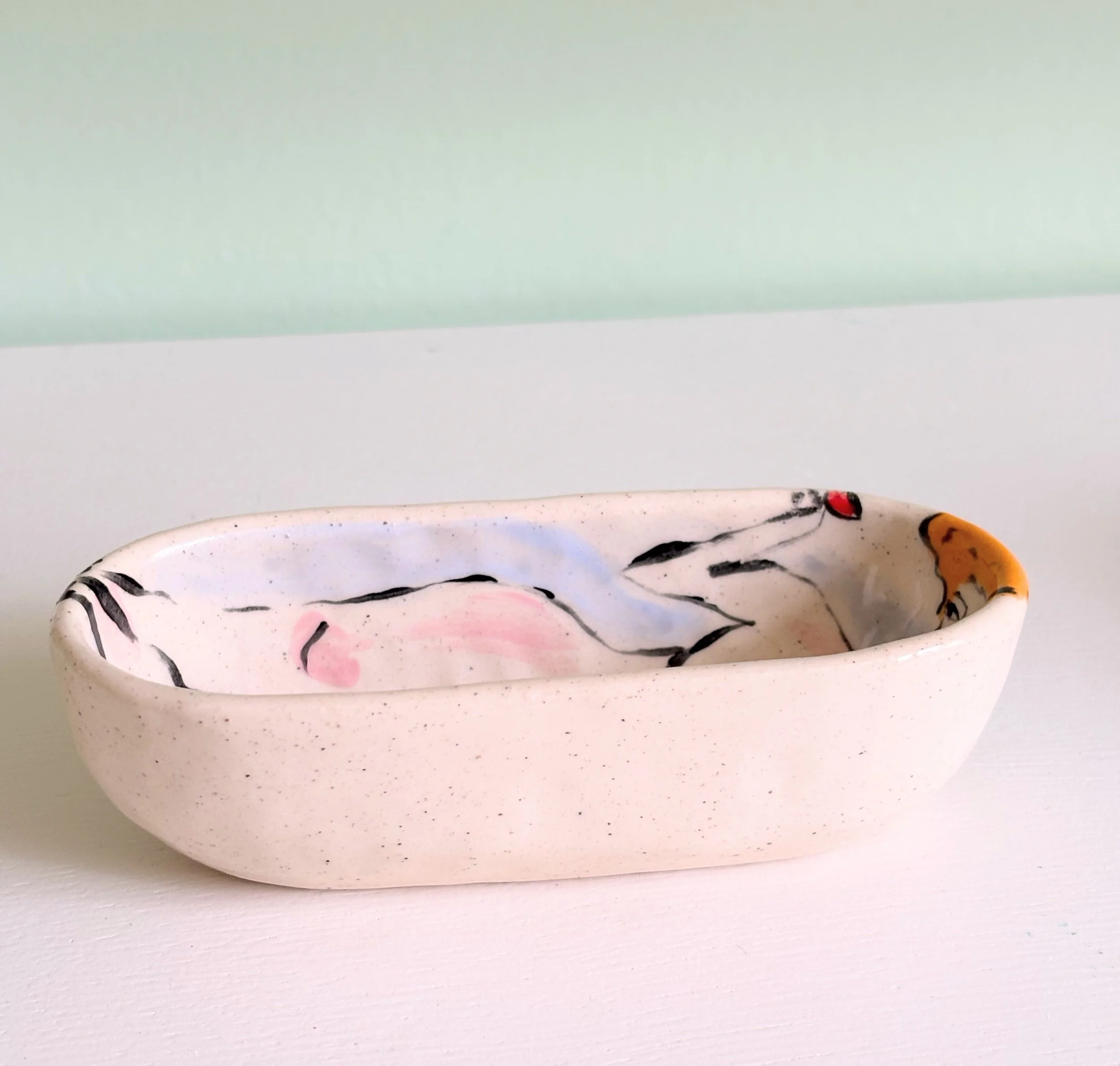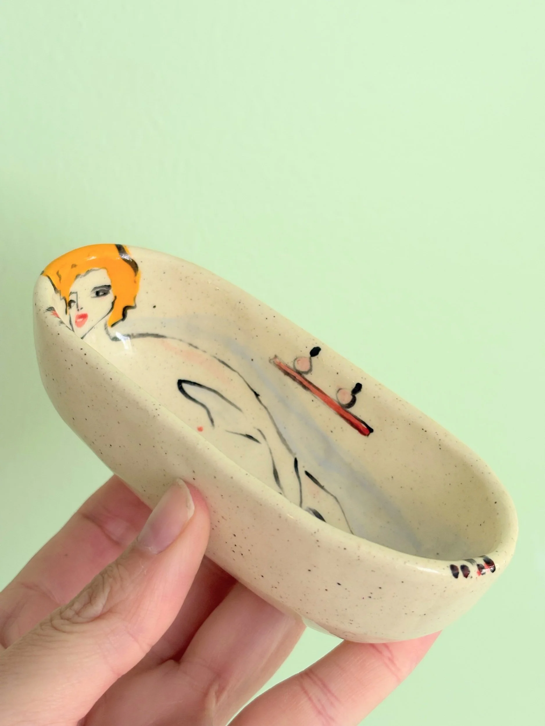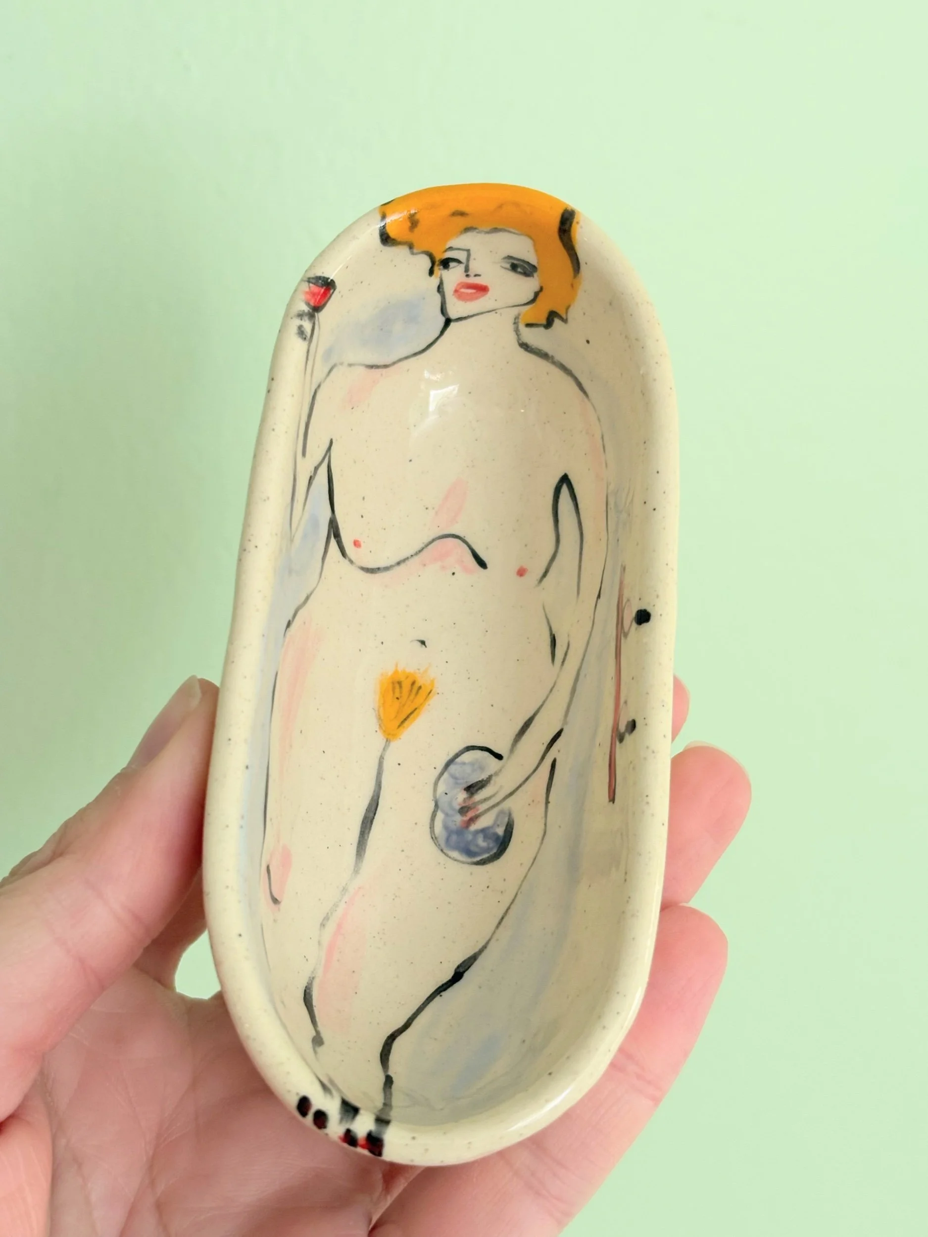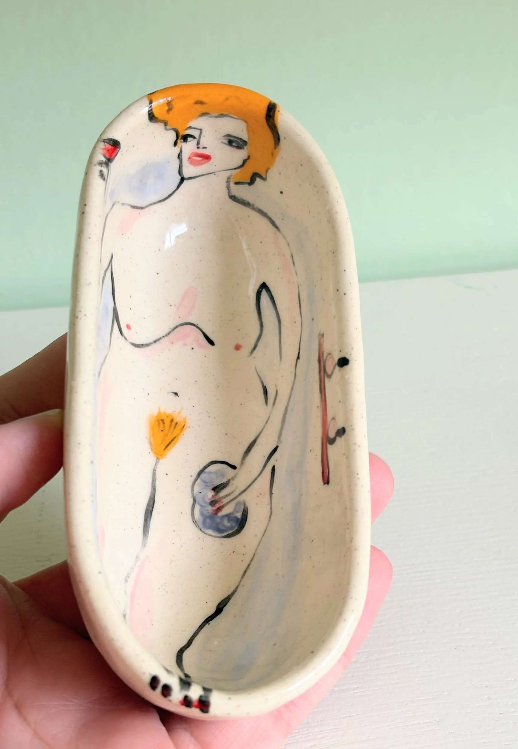 Hand pinched and painted tub. Perfect for your salts in a pinch or many other uses!