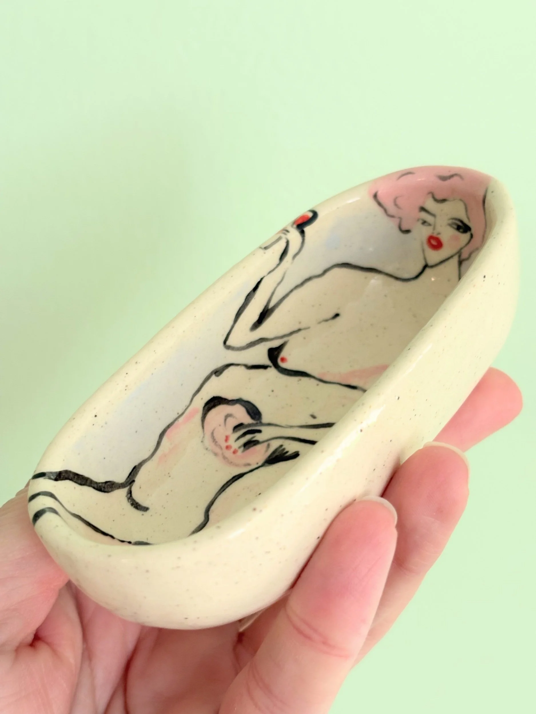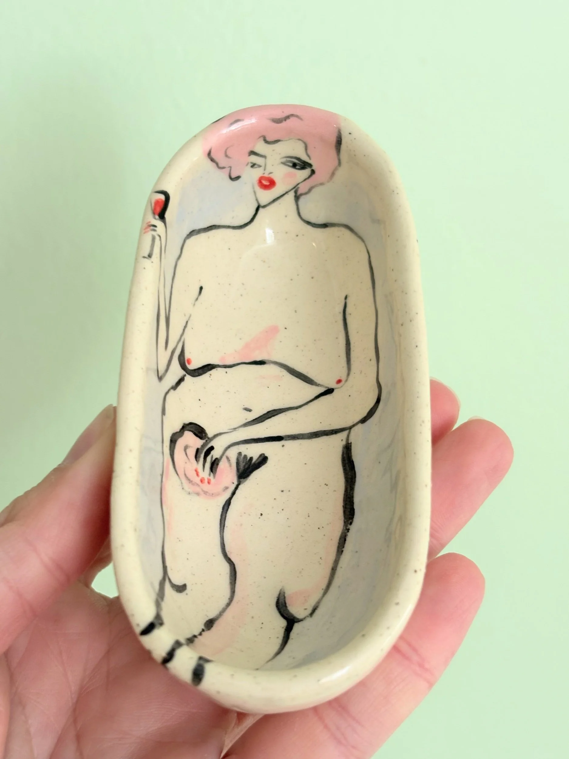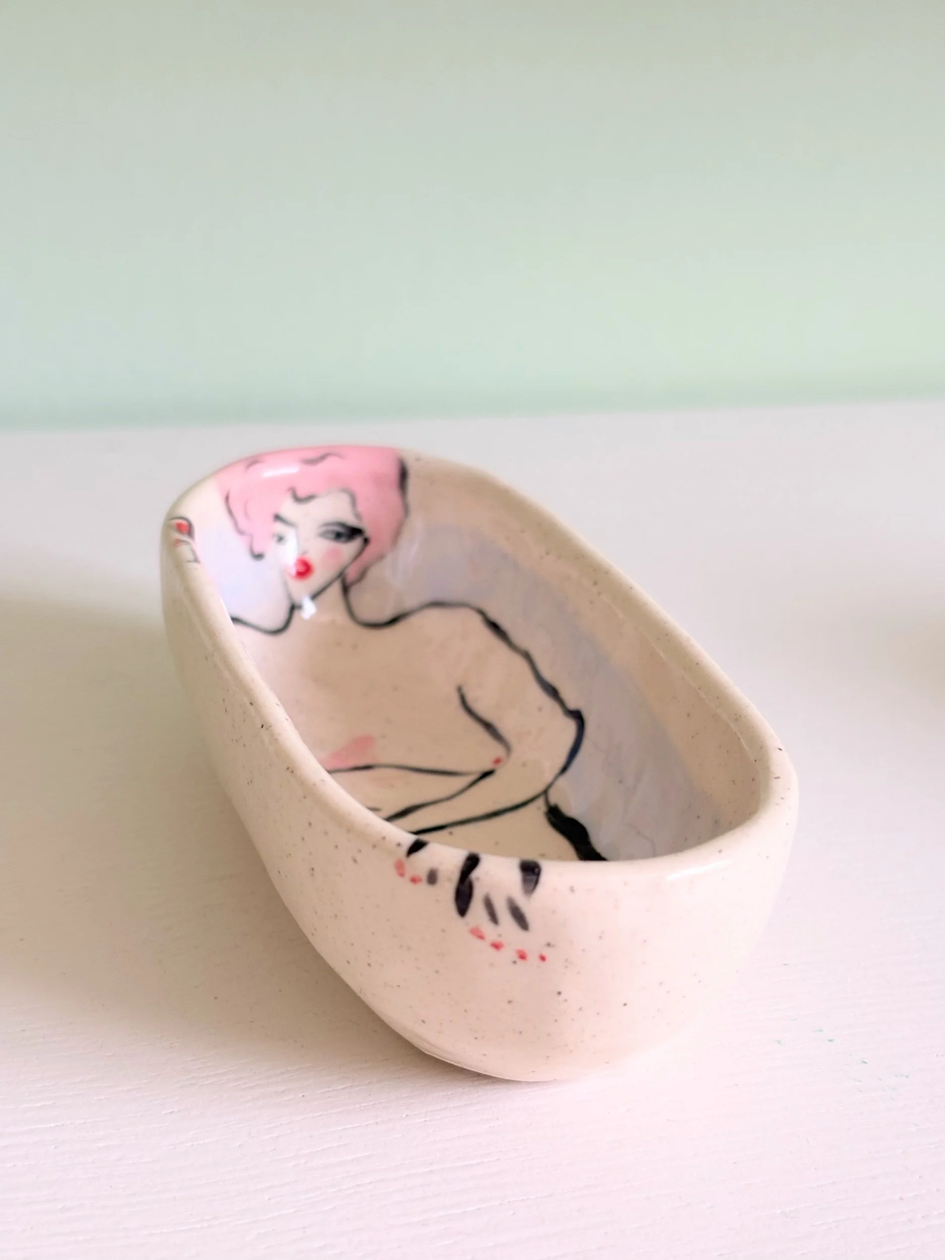 shop › Pink haired bathtub/salt pinch Image 1 of 5 Image 2 of 5 Image 3 of 5 Image 4 of 5 Image 5 of 5 Pink haired bathtub/salt pinch $50.00 Hand pinched and painted tub. Perfect for your salts in a pinch or many other uses!4.5 x 2” Add To Cart Added! Hand pinched and painted tub. Perfect for your salts in a pinch or many other uses!4.5 x 2”