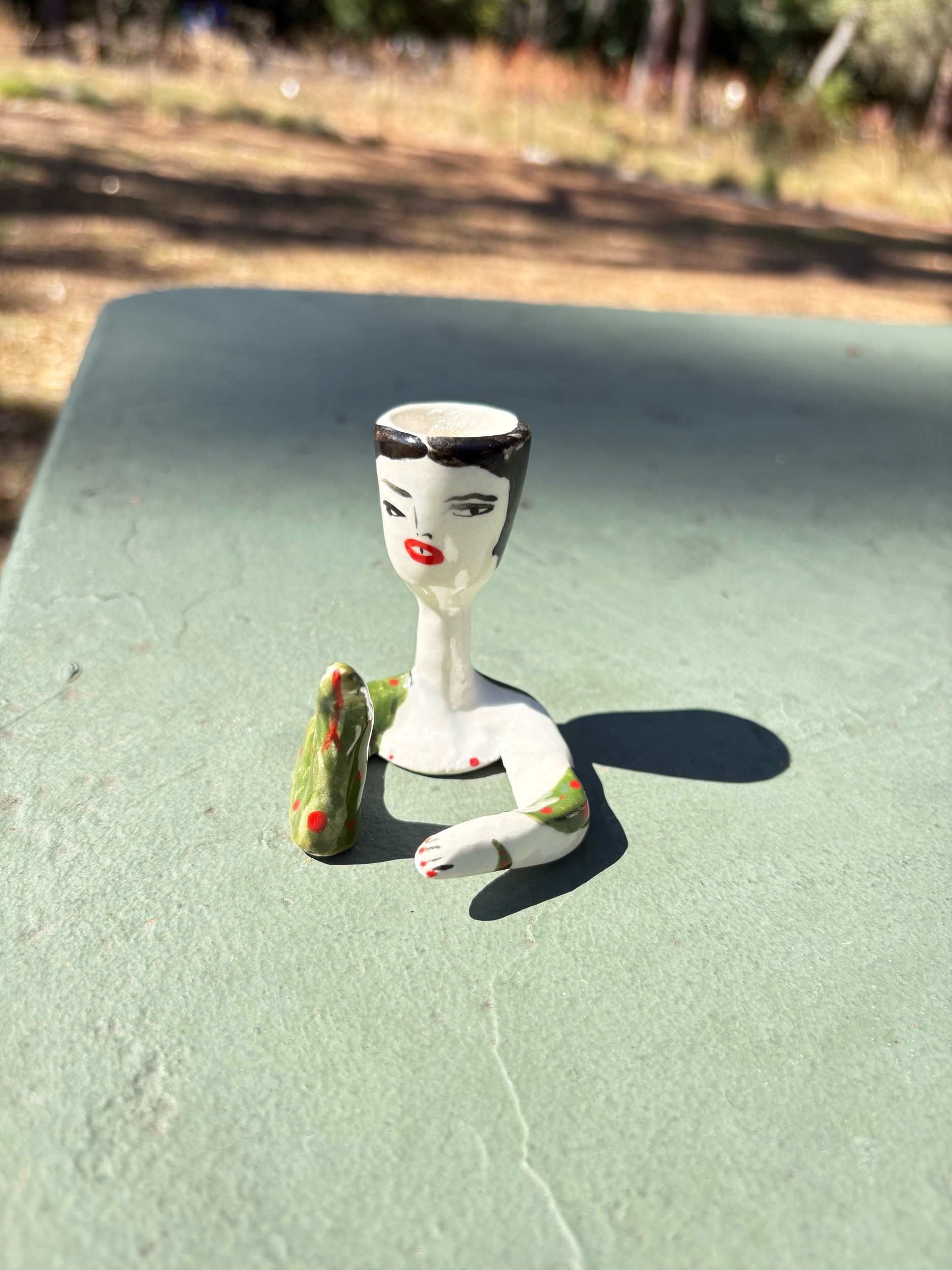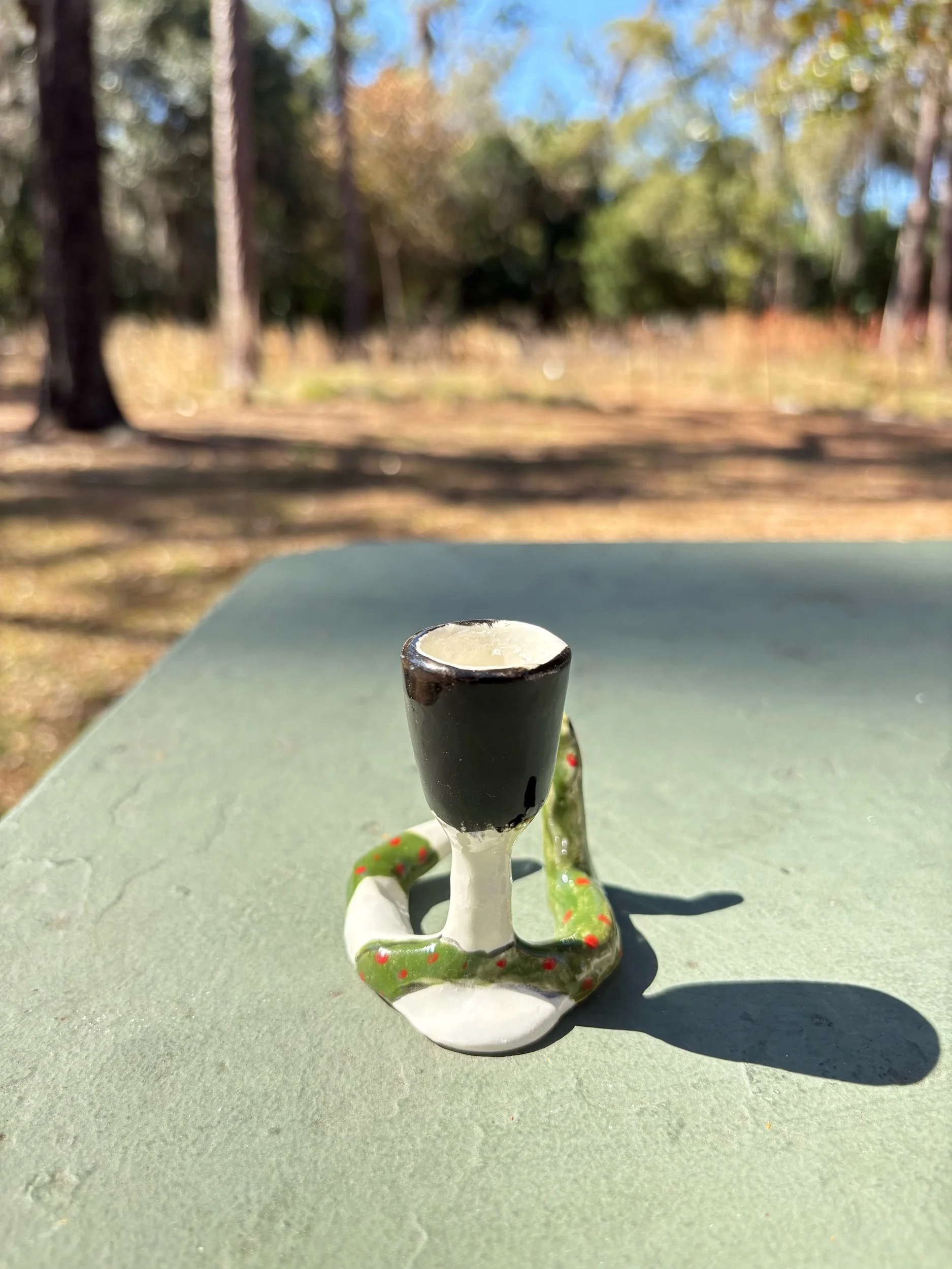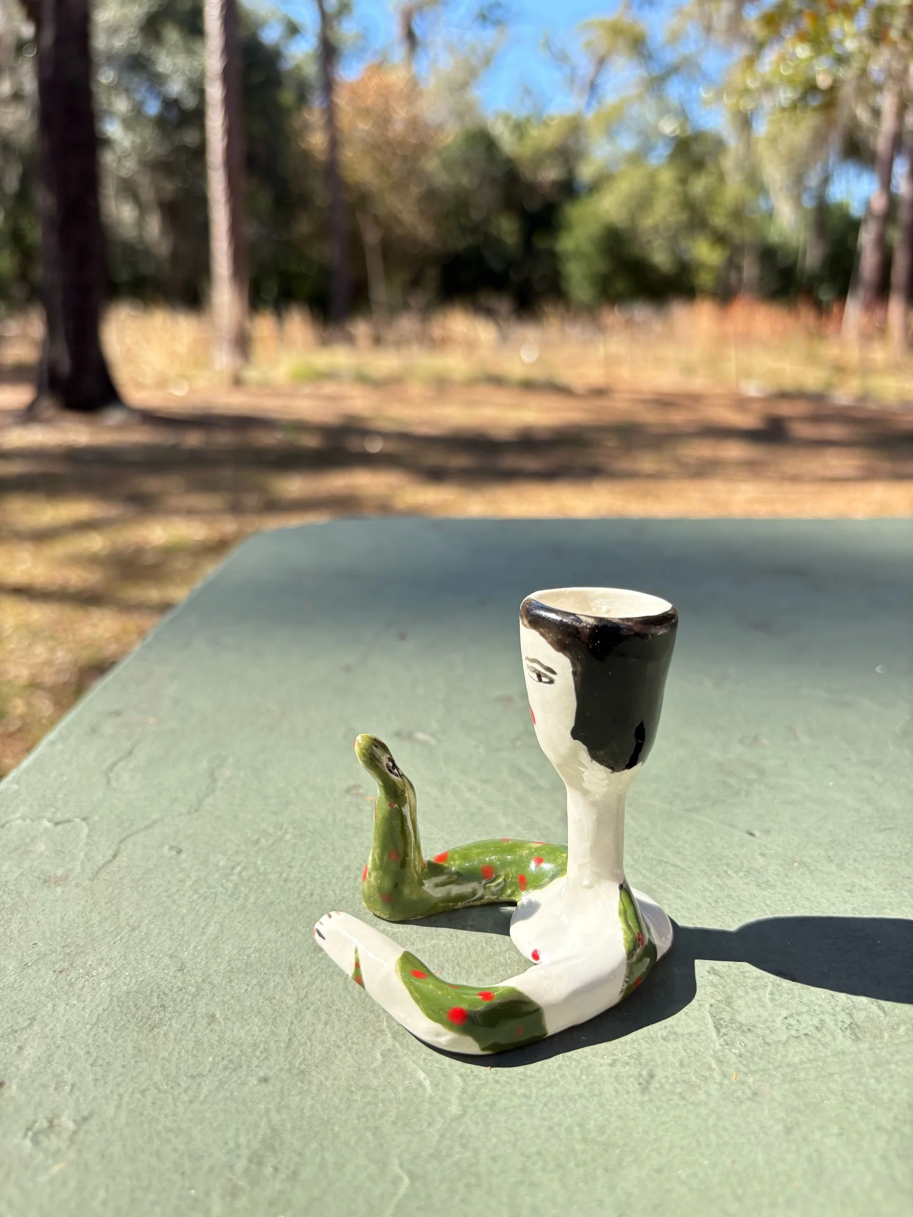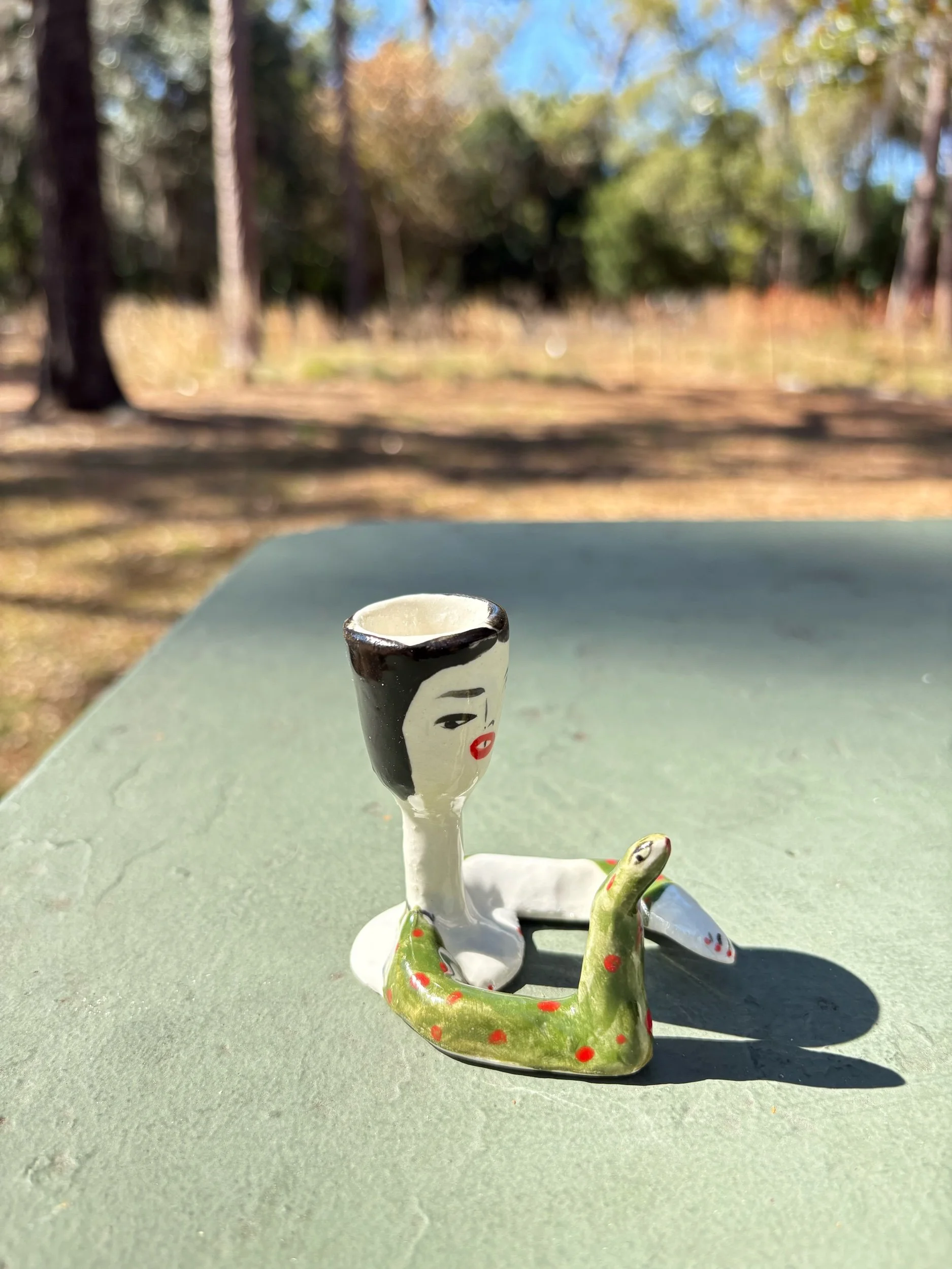 shop › Snake charmer candlestick holder Image 1 of 5 Image 2 of 5 Image 3 of 5 Image 4 of 5 Image 5 of 5 Snake charmer candlestick holder $60.00 Hand built and painted candlestick holder. Fits a slender tapered candle.2.5” tall x 2.5” Add To Cart Added! Hand built and painted candlestick holder. Fits a slender tapered candle.2.5” tall x 2.5”