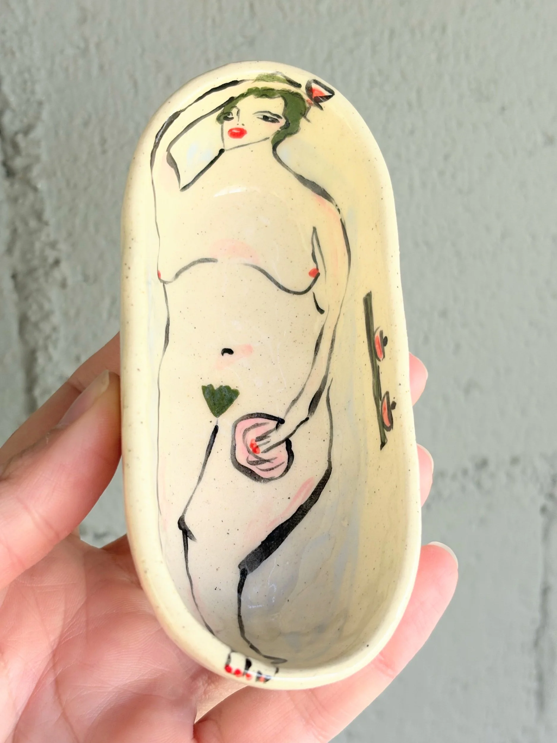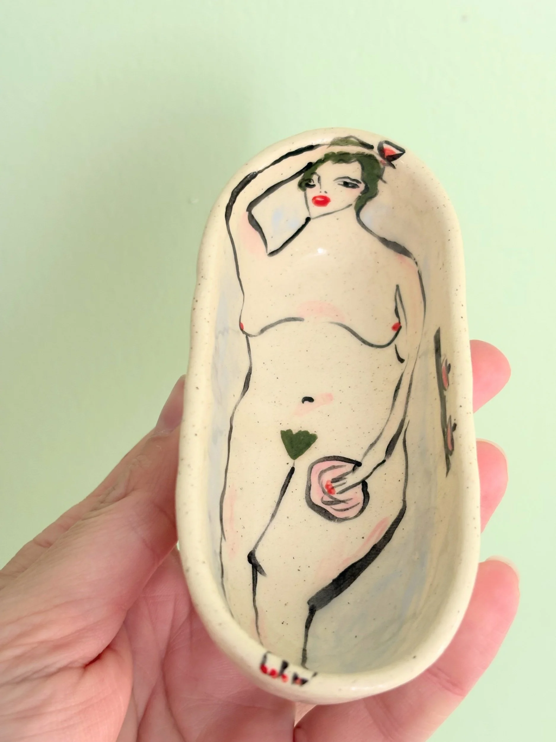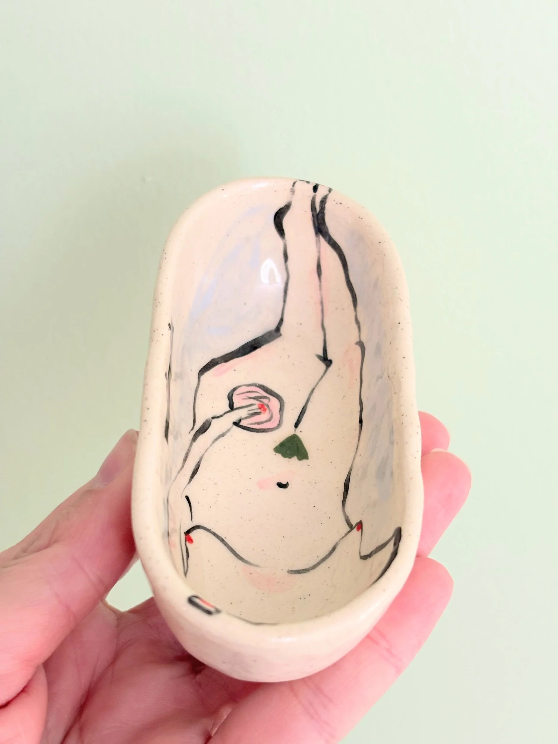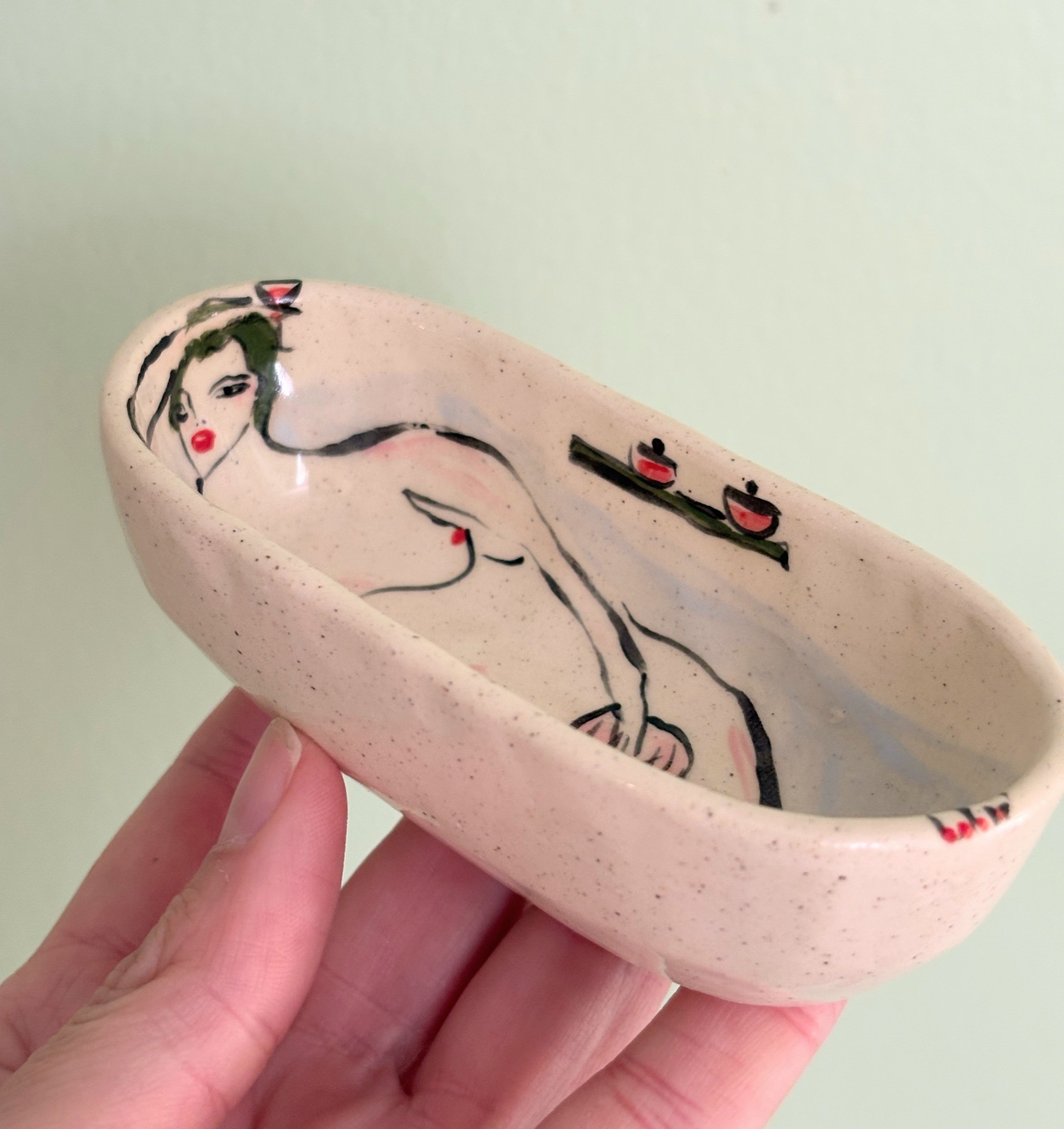 Hand pinched and painted tub. Perfect for your salts in a pinch or many other uses!