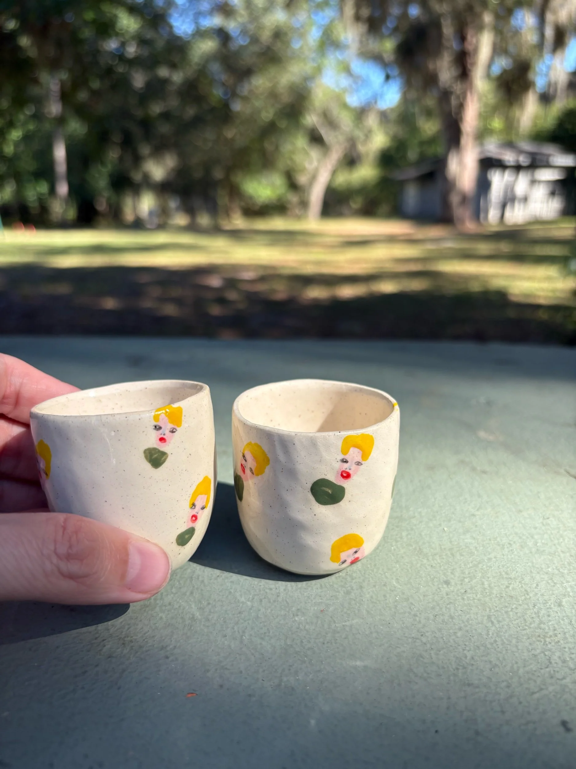 shop › Tiny sipper set Image 1 of 5 Image 2 of 5 Image 3 of 5 Image 4 of 5 Image 5 of 5 Tiny sipper set $45.00 Two hand pinched and painted sippers.Perfect for tiny victories or listerine routine!2” tall2” diameter Add To Cart Added! Two hand pinched and painted sippers.Perfect for tiny victories or listerine routine!2” tall2” diameter