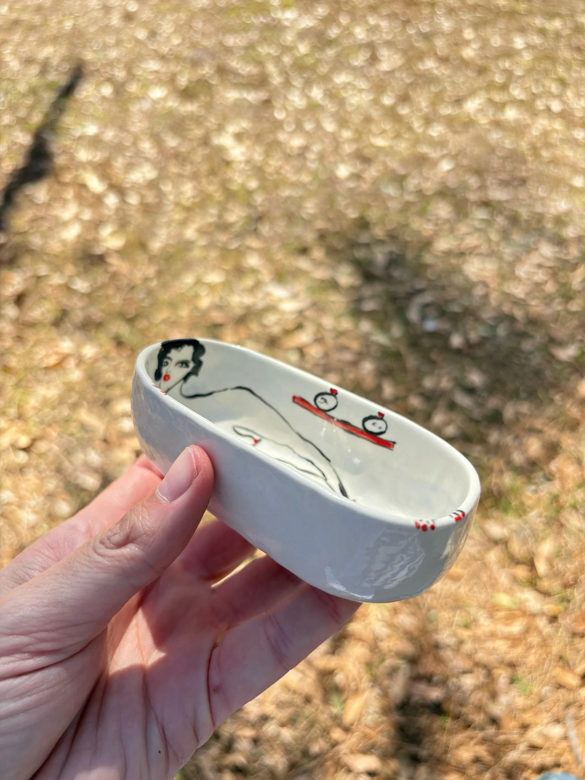 shop › Black haired bathtub/salt pinch Image 1 of 5 Image 2 of 5 Image 3 of 5 Image 4 of 5 Image 5 of 5 Black haired bathtub/salt pinch $50.00 sold out Hand pinched and painted tub. Perfect for your salts in a pinch!4 1/2” long x 2 wide1 1/4” tall Sold Out Added! Hand pinched and painted tub. Perfect for your salts in a pinch!4 1/2” long x 2 wide1 1/4” tall