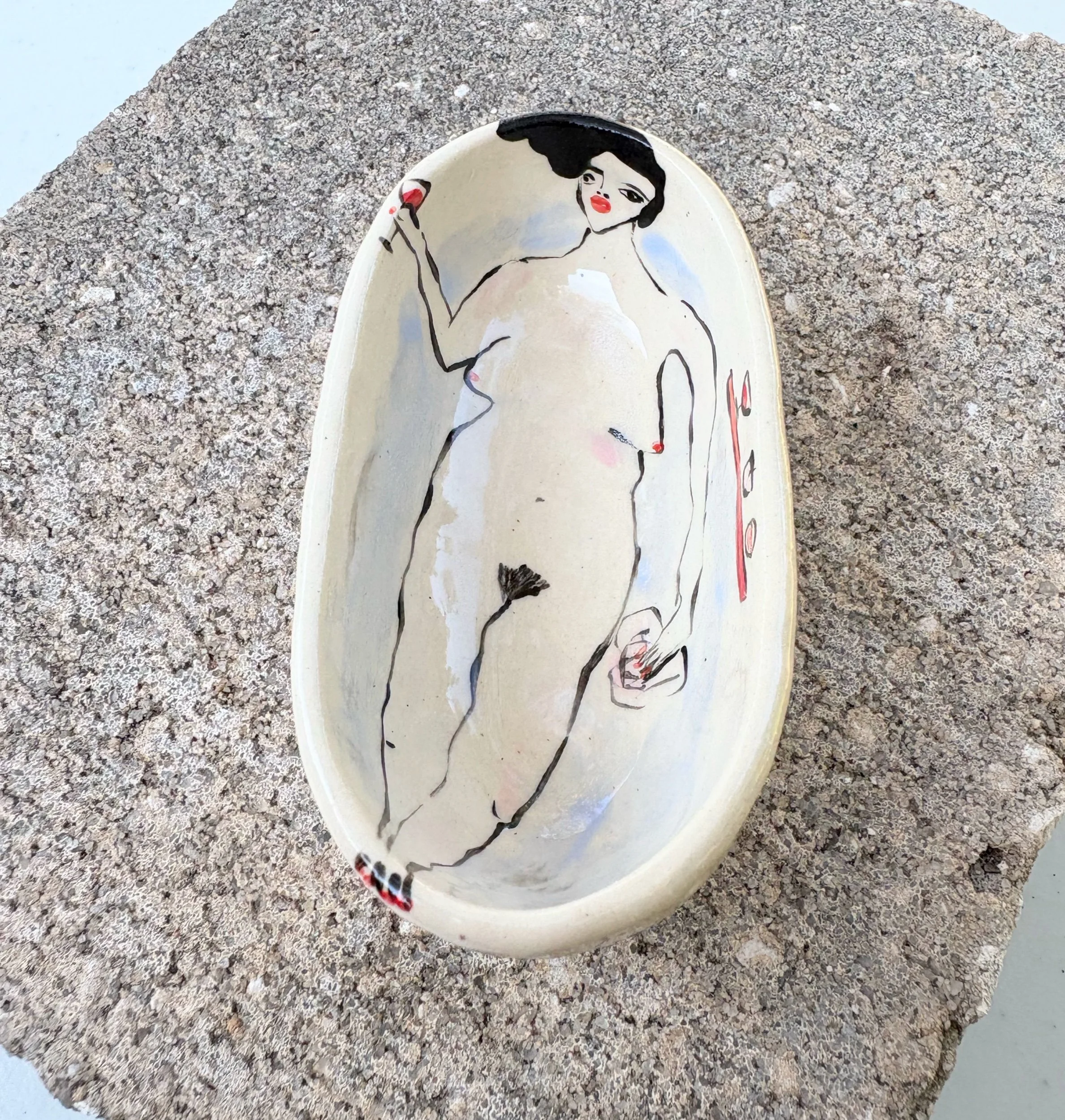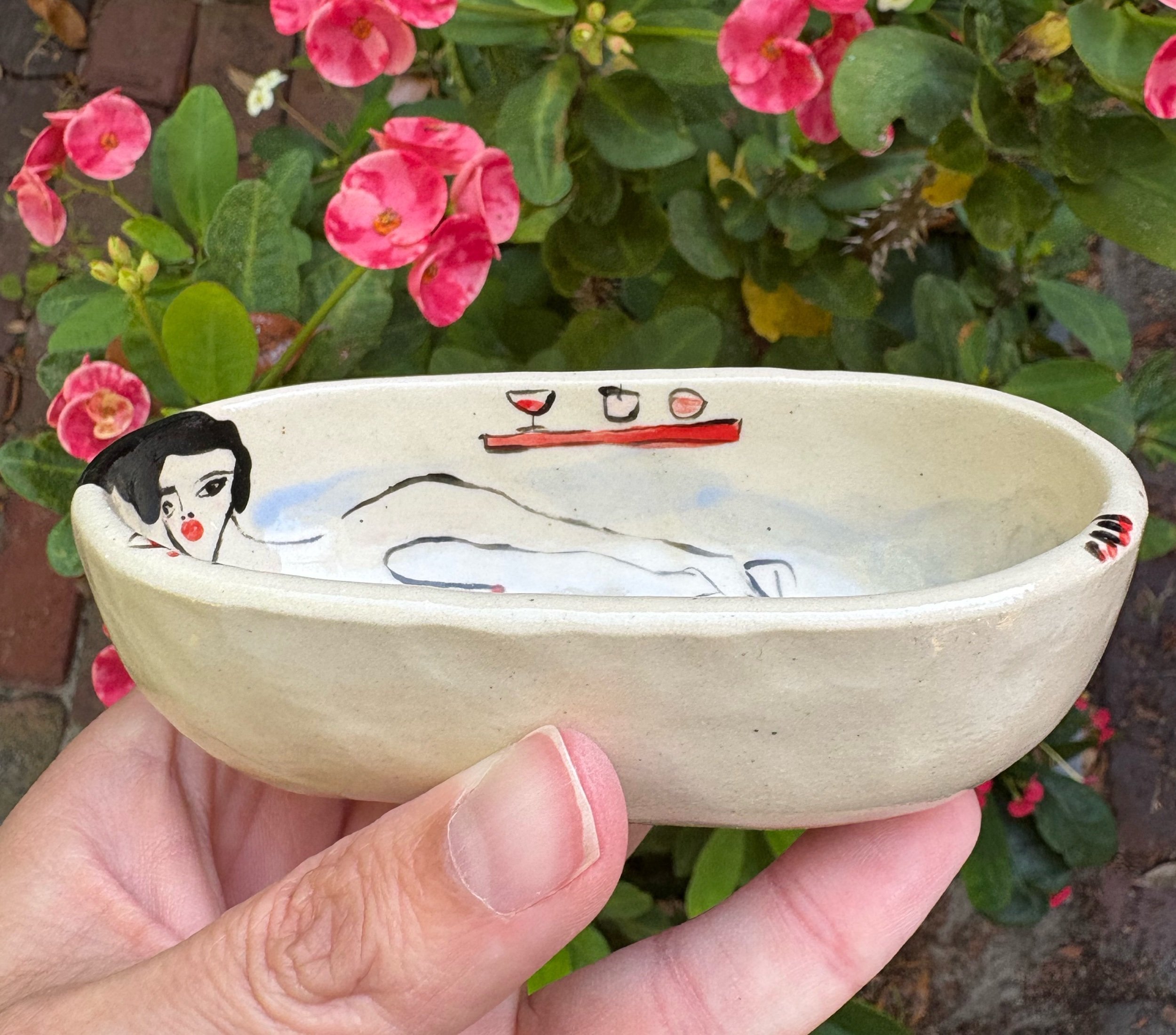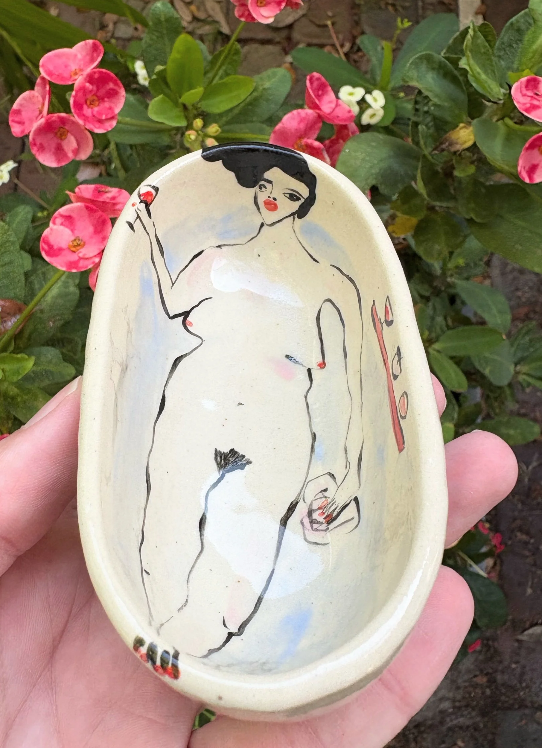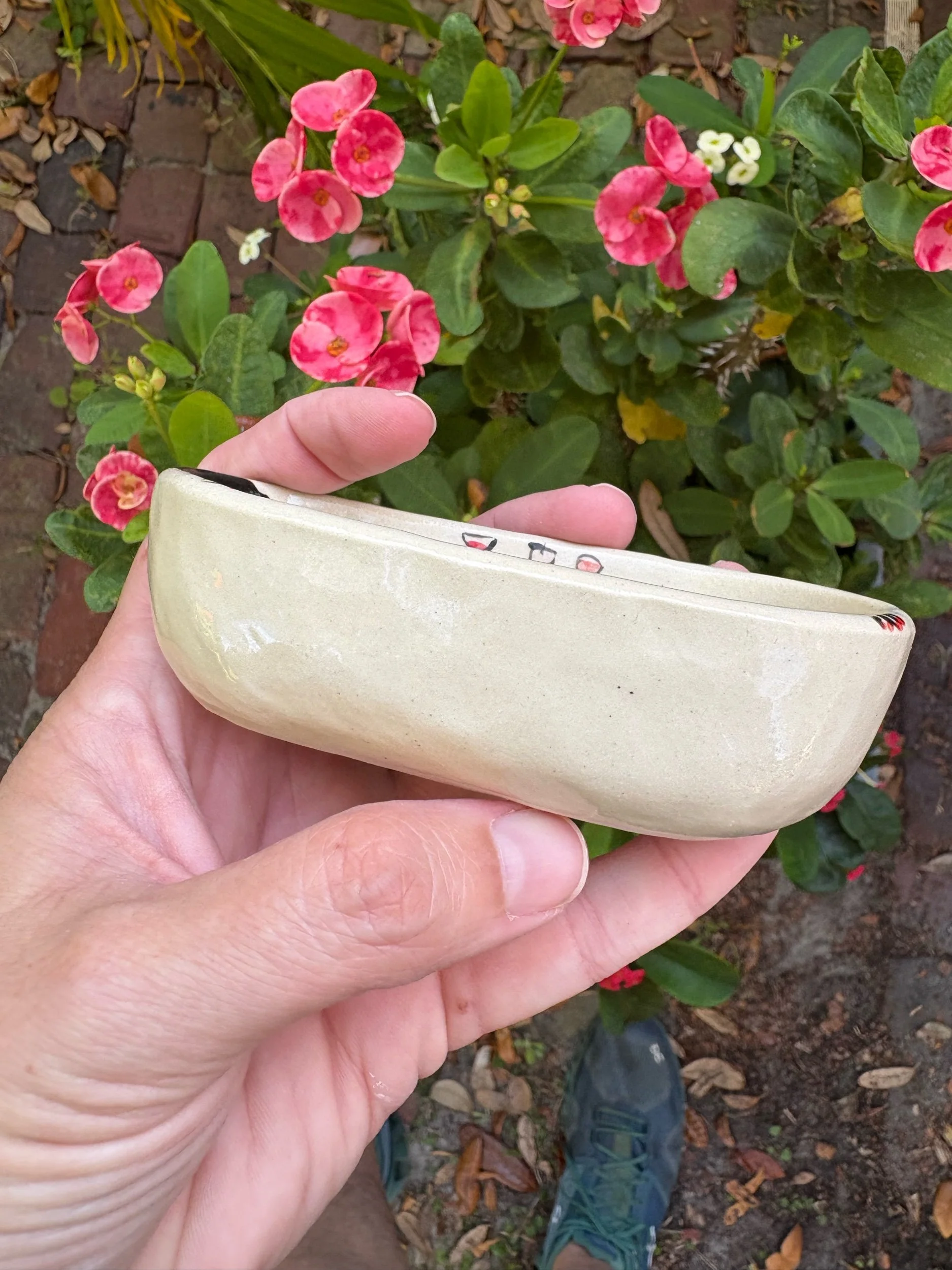 *all pieces are hand built, using pinching, coil or slab technique. No wheel. Hand painted with underglaze. Please enjoy the unique quirks!