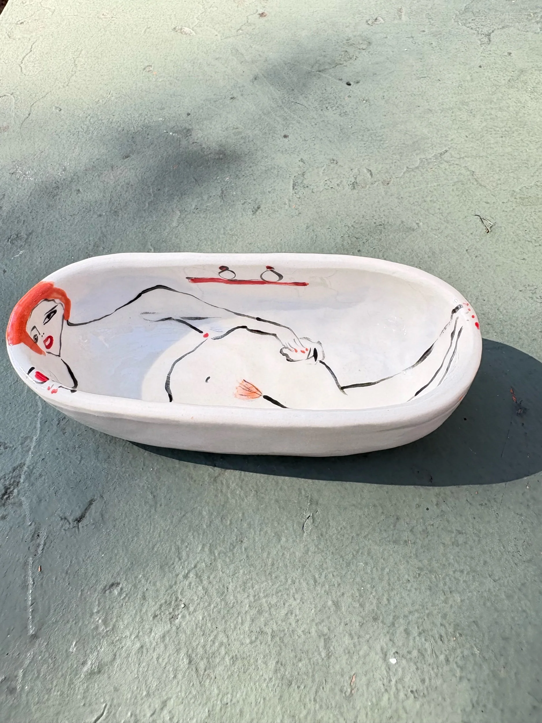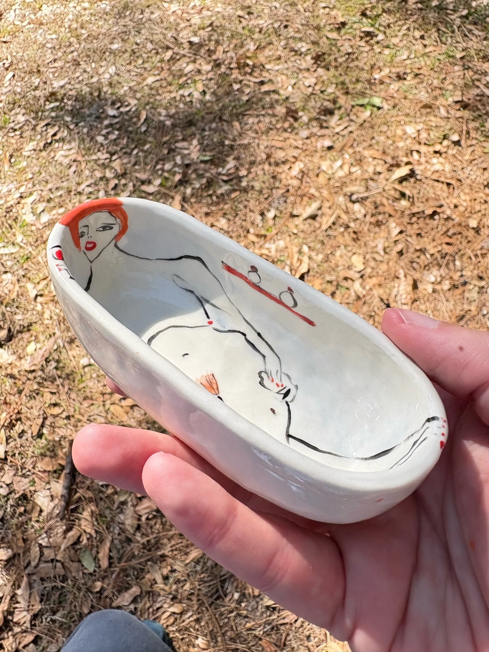 shop › Coral red haired bathtub/salt pinch Image 1 of 5 Image 2 of 5 Image 3 of 5 Image 4 of 5 Image 5 of 5 Coral red haired bathtub/salt pinch $50.00 Hand pinched and painted bathtub. Perfect for your salts in a pinch!4 3/4” x 2”Height 1 1/4” Add To Cart Added! Hand pinched and painted bathtub. Perfect for your salts in a pinch!4 3/4” x 2”Height 1 1/4”