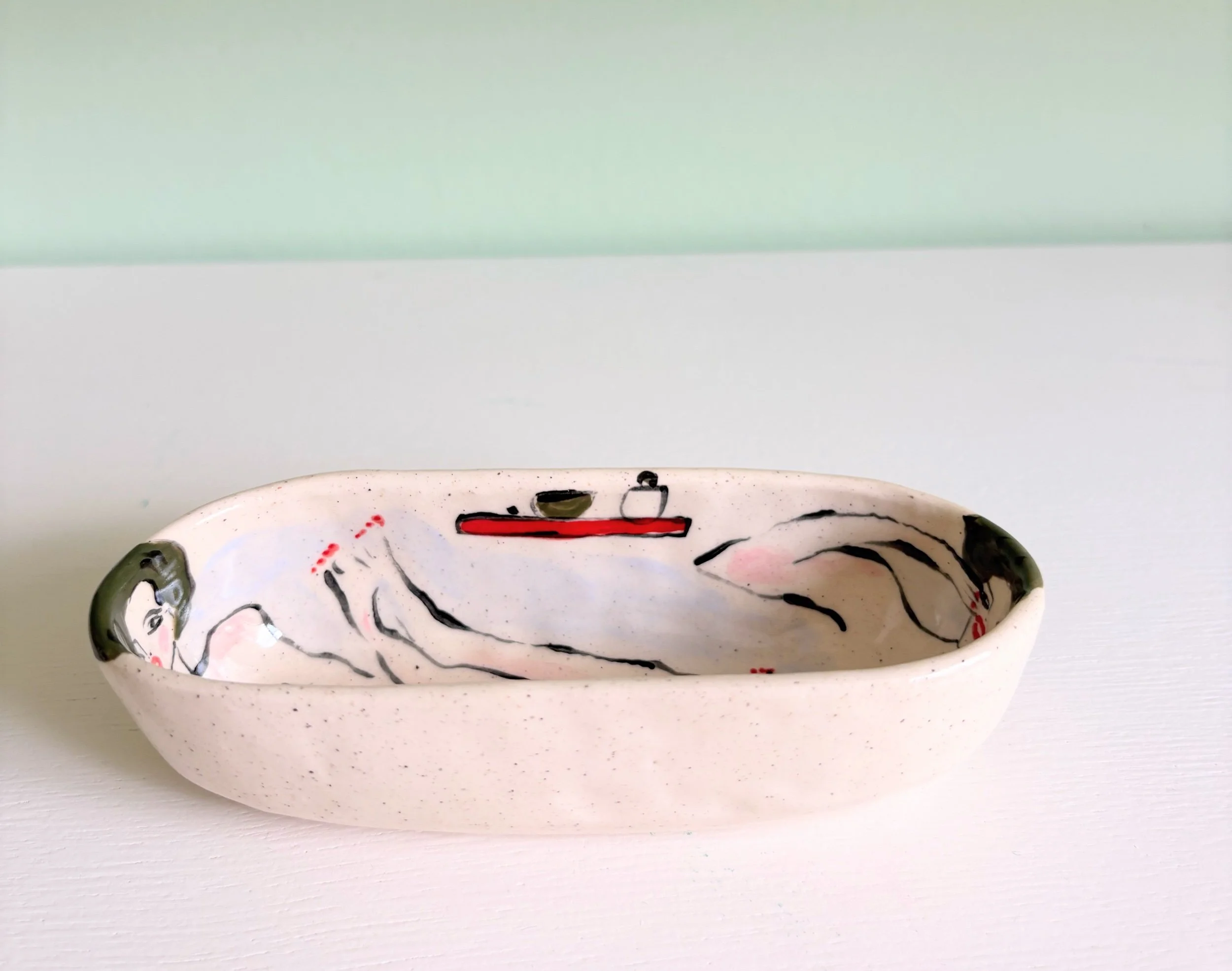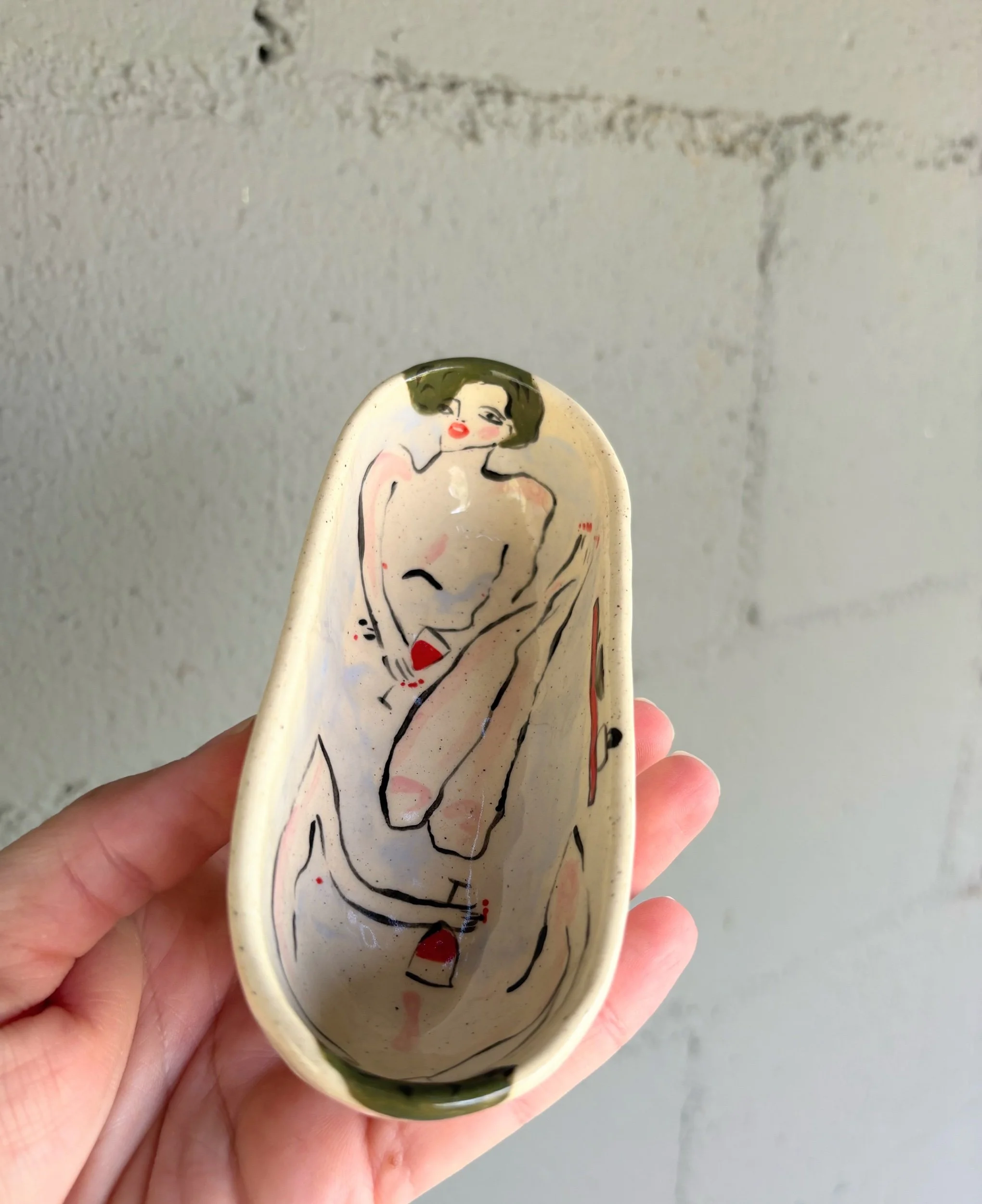 Hand pinched and uniquely painted tub dish. We love using these for as a salt pinch/salt bath but there are SO many options!